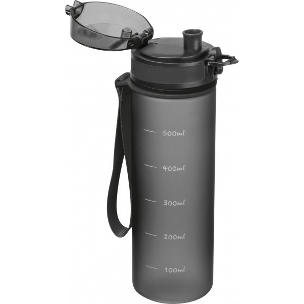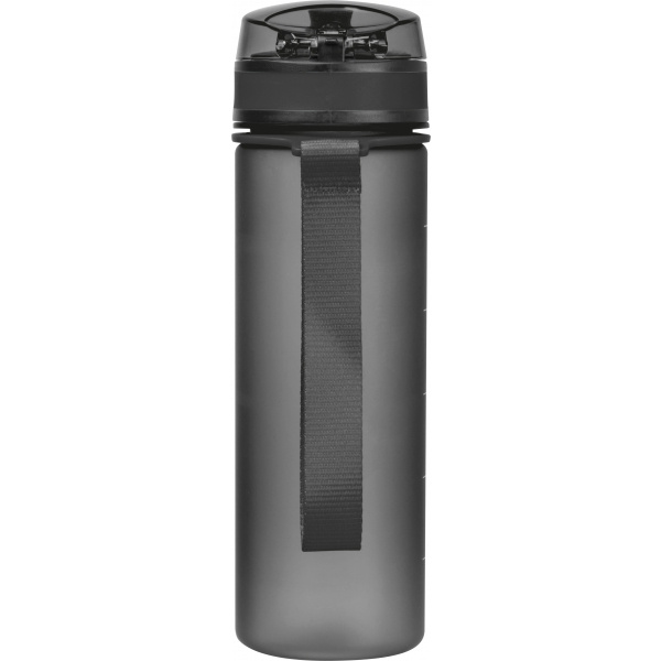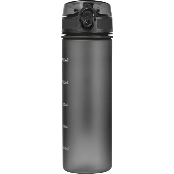 Butelka posiada wygodne otwieranie na przycisk, pętelkę do noszenia i nadrukowaną miarkę w ml.