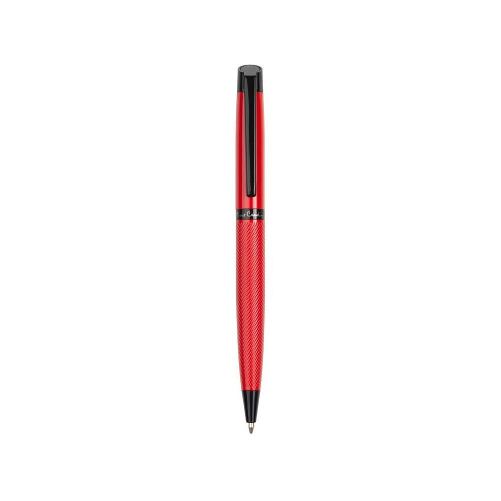 Długopis posiada mechanizm obrotowy, a dolna część korpusu ozdobiona jest strukturalnym wzorem.