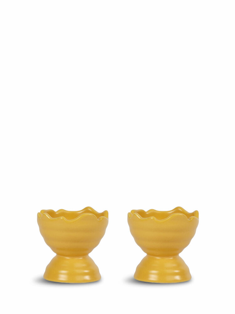 Kieliszek na jajko Ellen jest idealny do użytku podczas śniadania lub kolacji wielkanocnej i pasuje do wszystkich innych produktów z serii Ellen. Kieliszek ma świetny rozmiar i organicznie wyglądającą krawędź, przypominającą skorupki jaj. Ellen wykonana jest z kamionki. Sprzedawana w parze, zapakowana w ładne pudełko prezentowe. Dostępna w kolorze kości słoniowej w ciepłej żółtej tonacji. Można myć w zmywarce. Kieliszek na jajko Ellen należy do serii Ellen, która jest klasycznym produktem Sagaform o stylowym designie. Seria może być używana codziennie przez cały rok, jak również podczas świąt i naszych ukochanych tradycji. Nr art: 5018452 Kolor: Kremowy Waga: 50 g Rozmiar: 5 x 5 cm Materiał: Kamionka Można myć w zmywarce. Pakowanie: Box