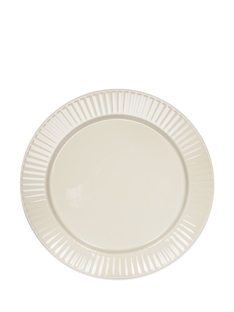 Talerz z kamionki z charakterystycznym reliefem w pięknym, inspirowanym naturą kolorze. Miękki beżowy odcień harmonizuje z pozostałymi kolorami serii, ale równie dobrze prezentuje się samodzielnie. Piękny wzór i linie kolekcji tworzą poczucie bezpieczeństwa i przytulności. Talerz jest częścią serii Coffee & More, stworzonej we współpracy z projektantką Margot Barolo dla marki Sagaform. Nadaje się do mycia w zmywarce i jest bezpieczny dla żywności. Materiał: Kamionka Rozmiar: ø27,5 cm waga: 860 g
