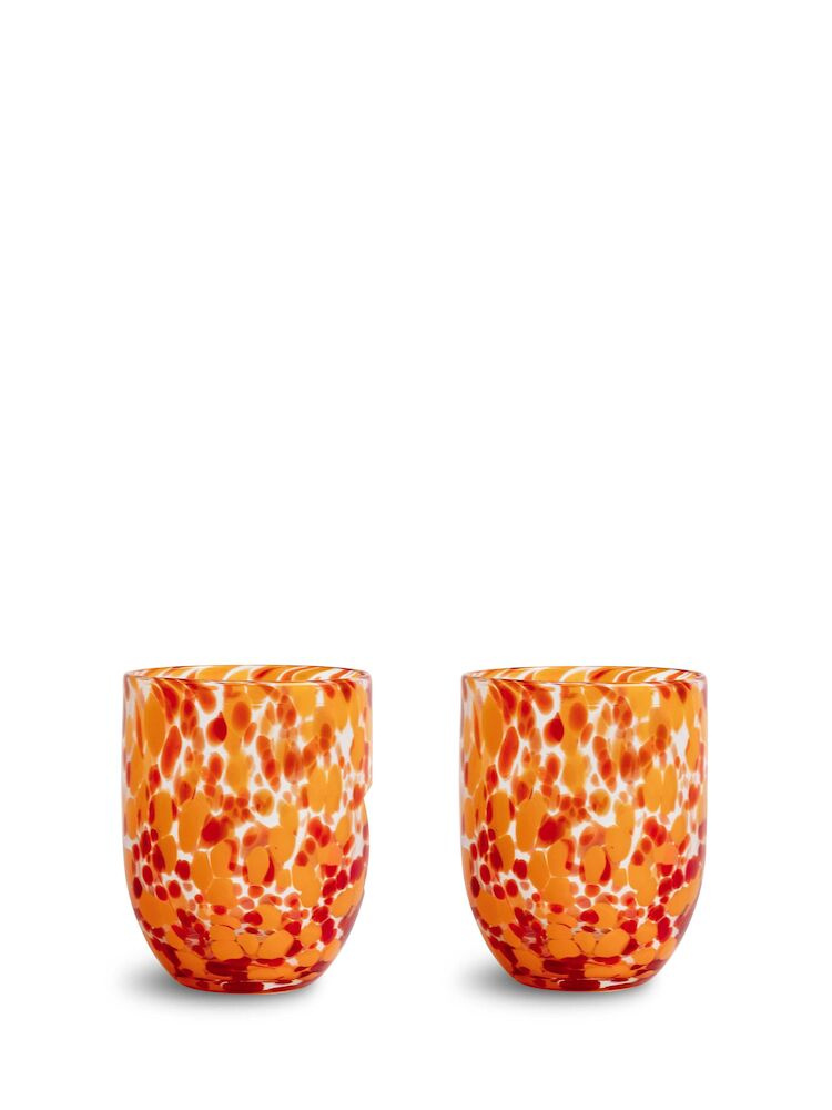Jak smakowita lakierowana landrynka – słodka, smaczna i nieodparta. Wykonana z ręcznie dmuchanego szkła z zabawnym wzorem konfetti w tonacji głębokiej czerni. Idealna do serwowania drinków, soku, mleka lub kawy. Może być również używana jako świecznik i świetna szklanka do szczoteczki w łazience. Ręcznie robione, mogą występować różnice w kolorze i strukturze. Odporna na mycie w zmywarce. Projekt Byon Studio. Dostarczane w zestawie 2 sztuk, w pudełku Byon. Materiał: Szkło dmuchane Waga: 220 g Wymiary: szerokość: 8 cm długość: 8 cm wysokość: 10 cm Kolor: czerwony/pomarańczowy Technika: Ręcznie wykonane, mogą wystąpić różnice w kolorze i strukturze.