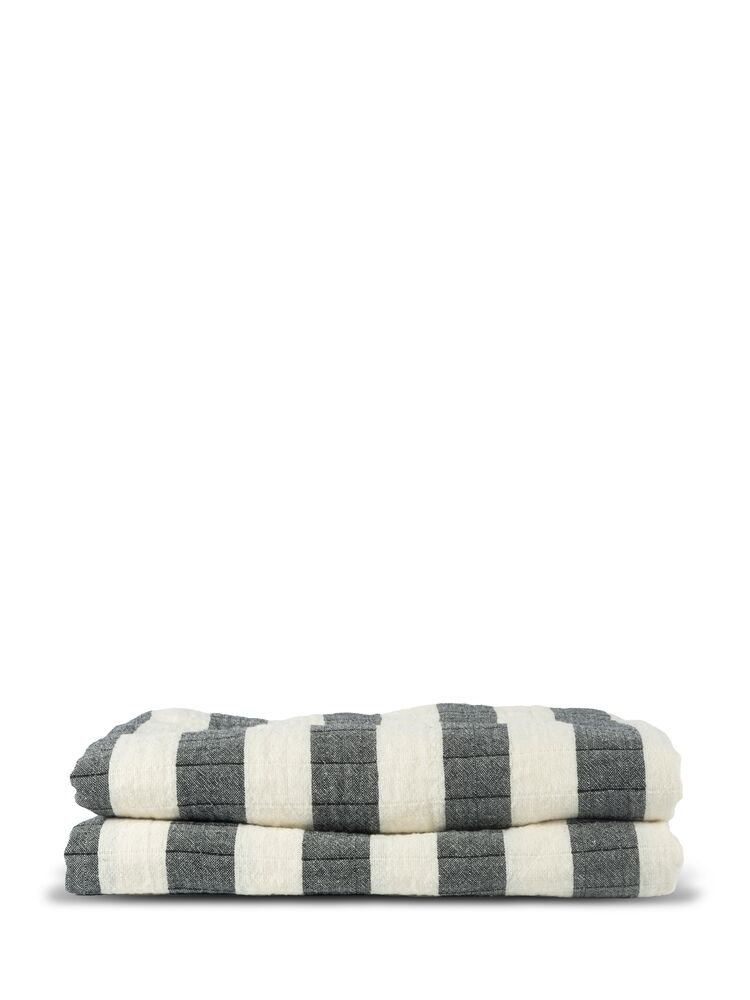 Koc, który jest jednocześnie przyjemny, miękki i chłodny. Dzięki klasycznemu pasiastemu wzorowi stanowi stylowy element wystroju wnętrza. Wykonany w 70% z bawełny z recyklingu i w 30% z poliestru z recyklingu. Wymiary: 130x170 cm. Dostępny w dwóch kolorach. Dostarczany w klasycznym pudełku prezentowym. Materiał: 70% Bawełna z recyklingu 30% Poliester z recyklingu Waga: 500 g Szerokość: 130 cm Długość: 170 cm 200 g/m²