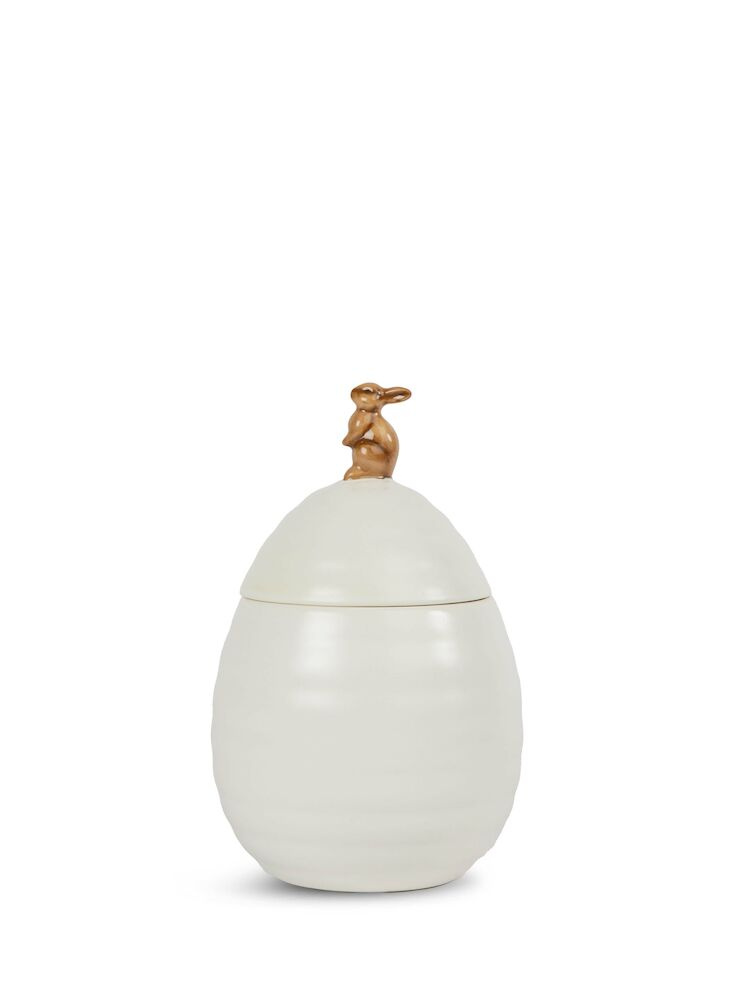Słoiki z zajączkiem są idealne do ukrywania rzeczy, które chcemy mieć pod ręką. W czasie Wielkanocy wypełniamy go cukierkami lub naszymi ulubionymi ciasteczkami, dajemy jako prezent lub zachowujemy dla siebie. Nr art: 5018449 Kolor: Kremowy. Ręcznie malowane, mogą wystąpić różnice w kolorach. Rozmiar: 11,5 x 18,5 cm Materiał: Kamionka Można myć w zmywarce. Pakowanie: Box