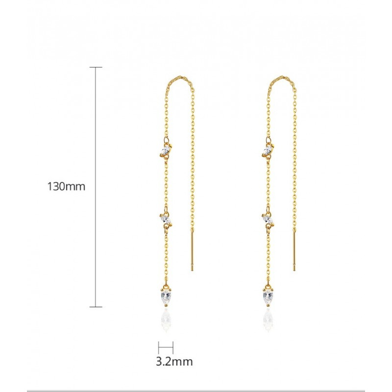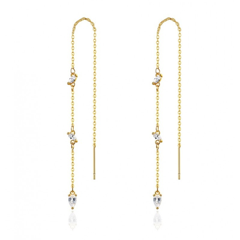 Kolczyki ze stali szlachetnej pozłacanej 14k złotem, cyrkonie, wiszące KST2852