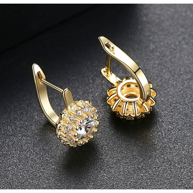 Kolczyki damskie ze stali szlachetnej Eleganckie i stylowe kolczyki. Wymiary kolczyków: 1,4cm x 0,9cm  Wymiary opakowania: 8,5cm x 7cm  Waga:  4 g netto / 5 g brutto Kolor: jasne złoto Rodzaj zapięcia: angielskie Producent: inny STAL CHIRURGICZNA jest odporna na warunki atmosferyczne, nie ulega korozji, nie rdzewieje, nie śniedzieje.