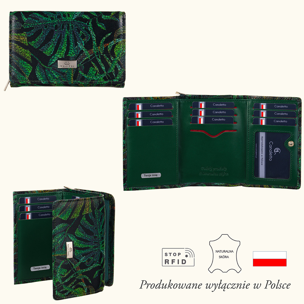 Portfel został wyposażony w nowoczesną technologię RFID, która skutecznie chroni Twoje karty płatnicze przed nieautoryzowanym odczytem danych. Dzięki temu możesz czuć się bezpiecznie zarówno podczas codziennych zakupów, jak i podróży. Specjalna warstwa blokująca sygnał RFID zapobiega skanowaniu kart zbliżeniowych, eliminując ryzyko kradzieży środków czy danych osobowych.