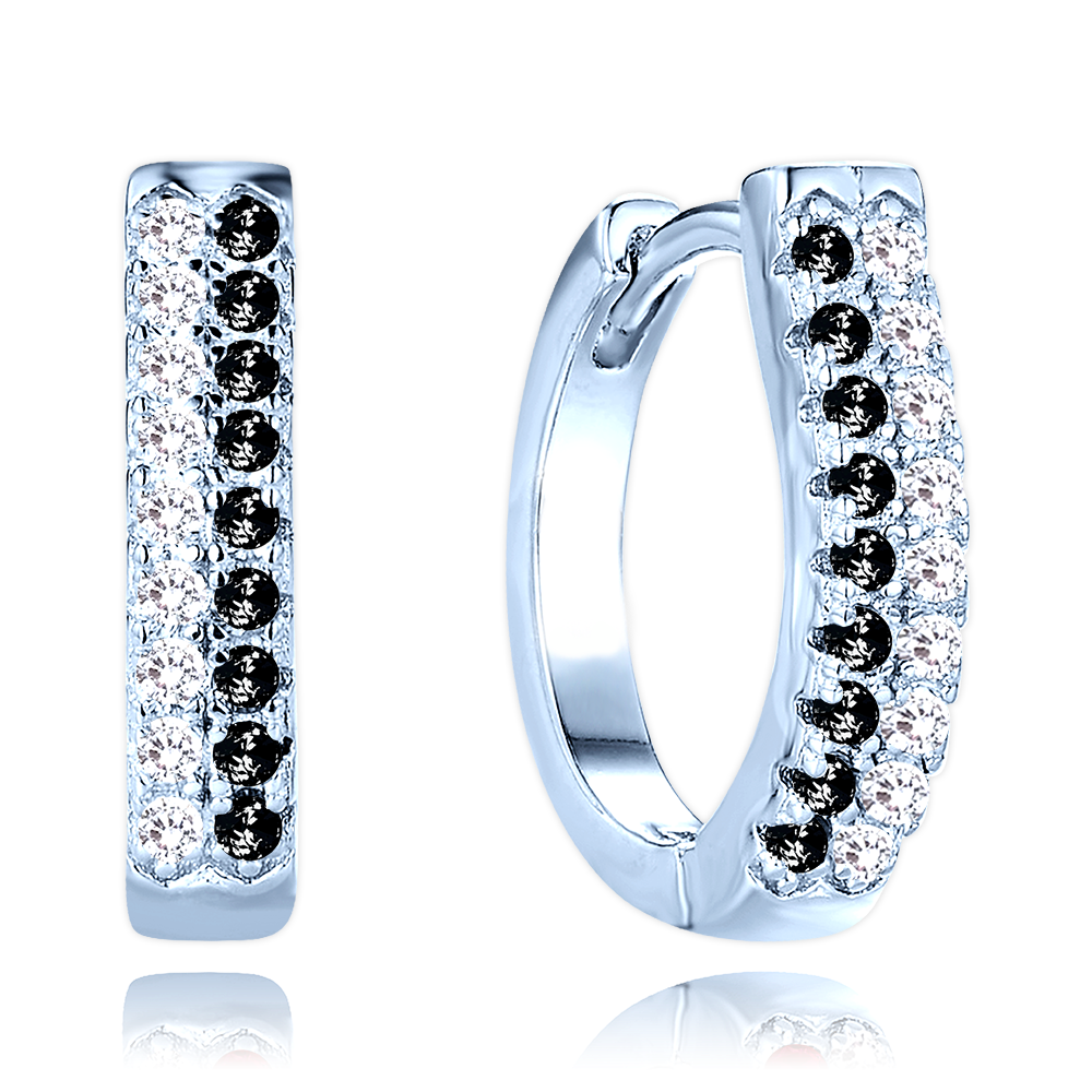 MINET Luksusowe srebrne kolczyki z białymi i czarnymi cyrkoniami