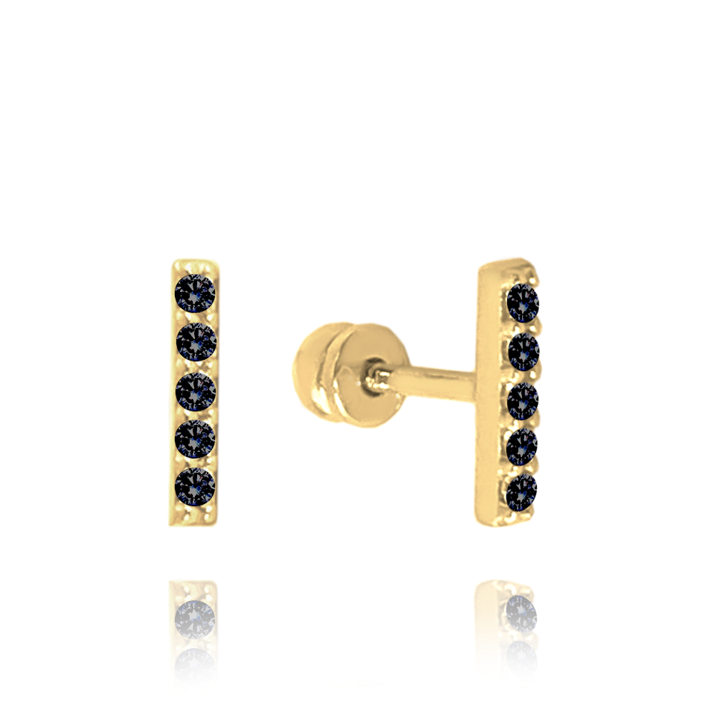 Eleganckie kolczyki wykonane z prawdziwego 14-karatowego złota. Kolczyki są ozdobione czarnymi cyrkoniami i nadają się do noszenia na co dzień i na specjalne okazje. Jakość wykonania i zapięcia kolczyków zauważą Państwo już po pierwszym założeniu.