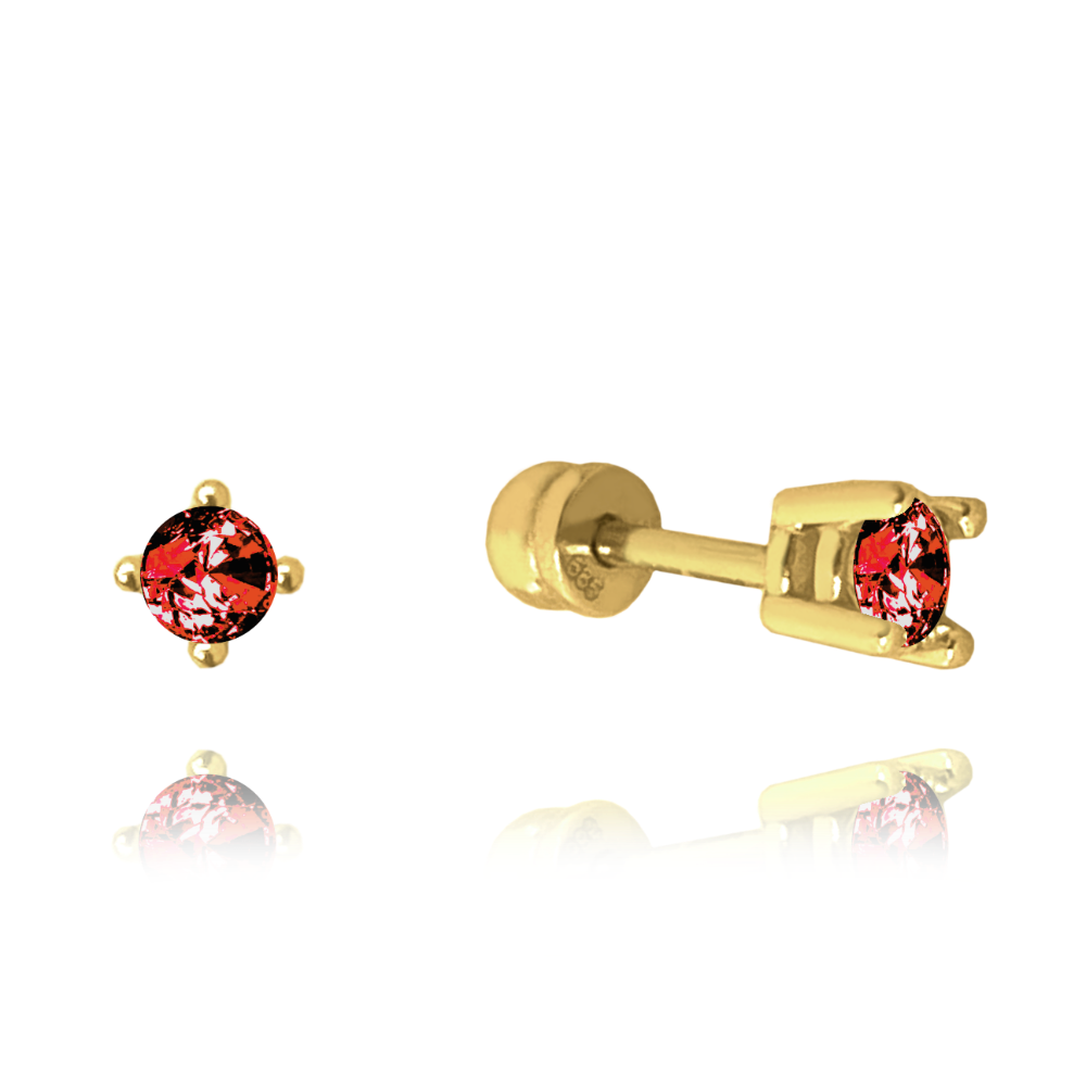 MINET Złote kolczyki wkrętki z czerwonymi cyrkoniami Au 585/1000 1,15g