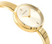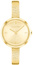 Zegarek CALVIN KLEIN Iconic to esencja minimalistycznej elegancji, która idealnie wpisuje się w estetykę nowoczesnej kobiety. Jego projekt wyróżnia się subtelną tarczą o promienistym szlifie słonecznym w złotej tonacji, która pięknie odbija światło i nadaje czasomierzowi wysublimowany charakter. Charakterystycznym elementem modelu jest półsztywna bransoleta typu bangle, o delikatnie zaokrąglonym, owalnym profilu. Dzięki swojej konstrukcji perfekcyjnie układa się na nadgarstku, tworząc z nim niemal jedność — niczym elegancka obręcz biżuteryjna. Jej tłoczona, teksturowana powierzchnia, zdobiona powtarzającym się logotypem „ck Calvin Klein”, to modowy akcent, który nadaje bransolecie nowoczesnego, designerskiego charakteru i sprawia, że zegarek wyróżnia się na tle klasycznych modeli.