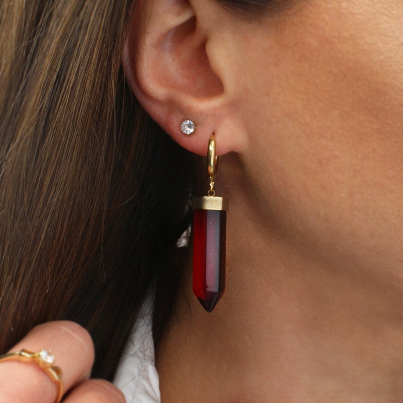 Kolczyki ze stali chirurgicznej platerowanej 14 karatowym złotem  Eleganckie i stylowe kolczyki. Kolor:  Jasne złoto Wymiary: 1,0 x 5,1 cm Rodzaj zapięcia: zapięcie