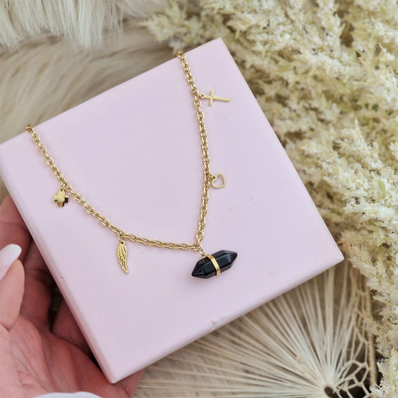 Modny naszyjnik ze stali szlachetnej platerowanej 14 - karatowym złotem Świetnie pasuje do eleganckich, jak również do codziennych stylizacji.