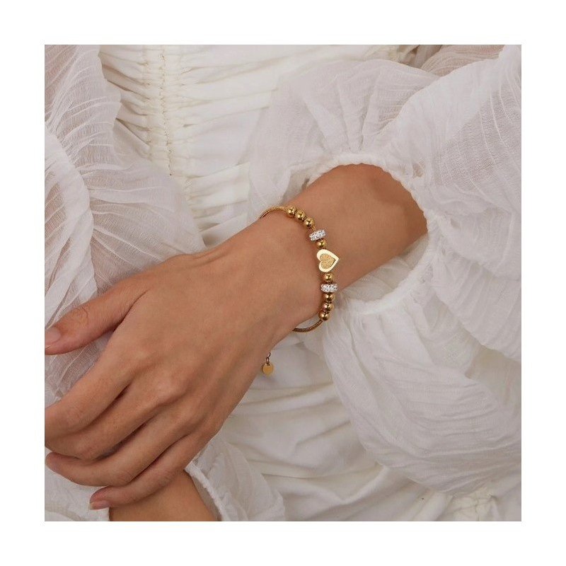 Modna bransoletka ze stali nierdzewnej platerowana 14 karatowym złotemŚwietnie pasuje do eleganckich, jak również do codziennych stylizacjiElegancki dodatek na każdą okazję, do sukienek, spódnic, spodenek.Wymiary:16cm + 5cm regulacjaWymiar kartonika:10 cm x 8 cmWaga:14g netto / 16g bruttoSTAL CHIRURGICZNA jest odporna na warunki atmosferyczne, nie ulega korozji, nie rdzewieje, nie śniedzieje.
