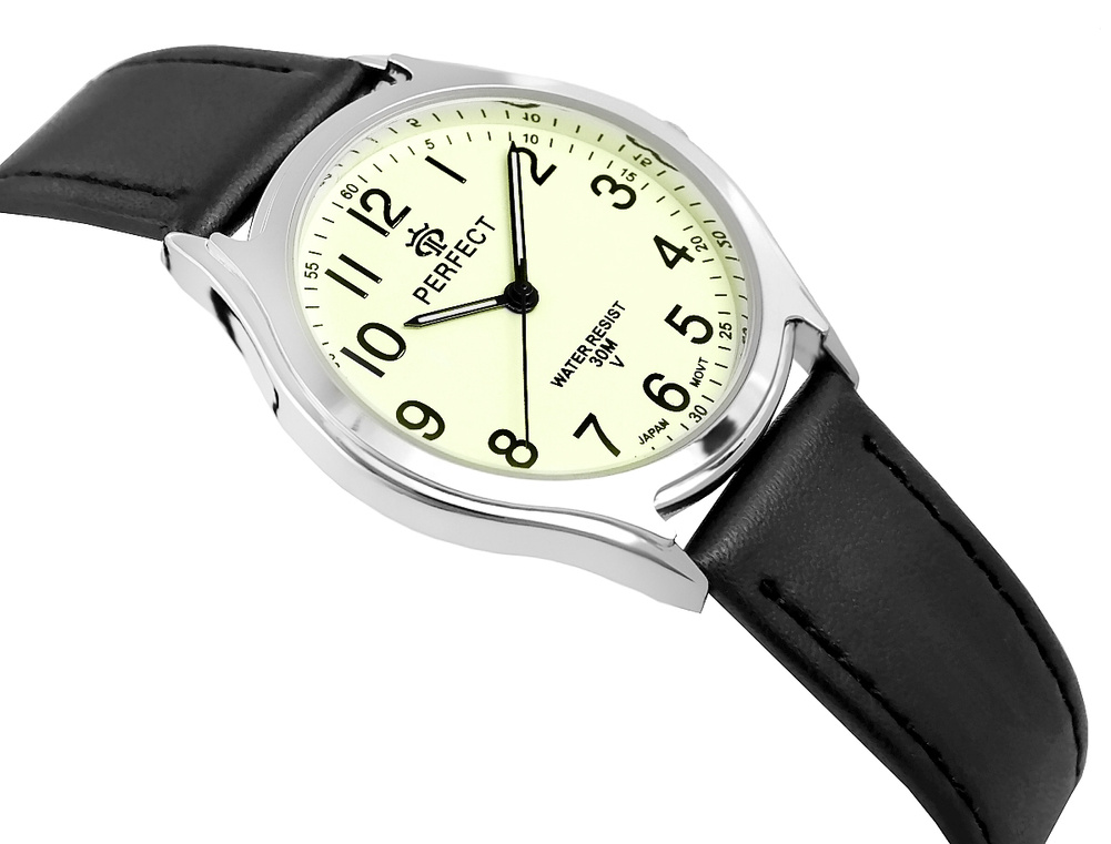 Model PERFECT GX068-04 to zegarek, z którym każda chwila nabiera blasku – także po zmroku. Srebrna koperta subtelnie oplata jasną, fluorescencyjną tarczę, która nie tylko przyciąga wzrok, ale również gwarantuje doskonałą widoczność w ciemności. Kontrastujące, czarne indeksy i wskazówki sprawiają, że odczyt godziny jest szybki i intuicyjny – zarówno w dzień, jak i w nocy. Subtelny sekundnik dodaje dynamiki, poruszając się z precyzją charakterystyczną dla japońskiego mechanizmu.Czarny pasek z dekoracyjnym przeszyciem to nowoczesne wykończenie, które świetnie komponuje się z codziennym i eleganckim stylem. To idealny wybór dla osoby ceniącej funkcjonalność połączoną z subtelną estetyką.