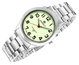 Męski model PERFECT R50 to świetny przykład na to, że funkcjonalność i styl mogą iść w parze. Wytrzymała stalowa bransoleta i klasyczna koperta tworzą spójną całość, która przyciąga uwagę swoim eleganckim, ale i praktycznym wyglądem. Tarcza w jasnozielonym, fluorescencyjnym odcieniu to nie tylko estetyczny akcent – to realne ułatwienie, dzięki któremu odczytasz godzinę nawet w ciemności. Duże cyfry arabskie oraz czerwony sekundnik zapewniają pełną czytelność w każdych warunkach – bez zbędnych ozdobników, czysto i przejrzyście. Zegarek wyposażony jest w niezawodny mechanizm kwarcowy JAPAN MOVT, ceniony za wysoką precyzję działania, a wodoszczelność na poziomie 30M gwarantuje niezawodność w codziennym użytkowaniu. Całość tworzy zegarek, który doskonale sprawdzi się zarówno w pracy, jak i na co dzień – dla mężczyzny, który ceni sobie styl i praktyczność.