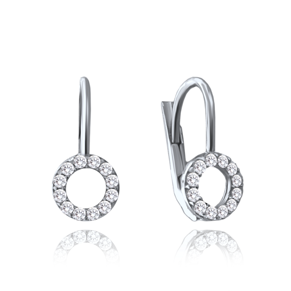 Eleganckie kolczyki wykonane z białego 14-karatowego złota. Kolczyki są ozdobione białymi cyrkoniami i nadają się do noszenia na co dzień i na specjalne okazje. Jakość wykonania i zapięcia kolczyków zauważą Państwo już po pierwszym założeniu.