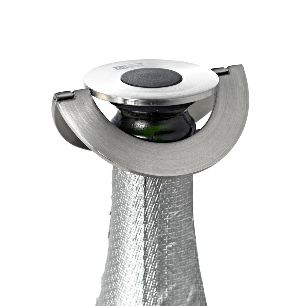 Korek do szampana CHAMP ma bardzo niski, płaski profil, co sprawia, że idealnie sprawdzi się w przechowywaniu butelek w lodówce. Poza tym nie trzeba się obawiać o jakiekolwiek przeciekanie, gdyż, za pomocą silikonowej uszczelki oraz obrotowych uch blokujących się na szyjce butelki, całkowicie ją uszczelnia. Szczotkowana stal nierdzewna oraz przezroczysty silikon nadają mu elegancji, a całość zapakowana jest w stylowe pudełko prezentowe. Można go dopasować do pozostałych produktów z kolekcji CHAMP. Produkt został zaprojektowany przez AdHoc Design Team oraz Stefana Koitzscha. Materiał: stal nierdzewna oraz silikon. Wymiary: średnica – 8cm, wysokość – 1,7cm.