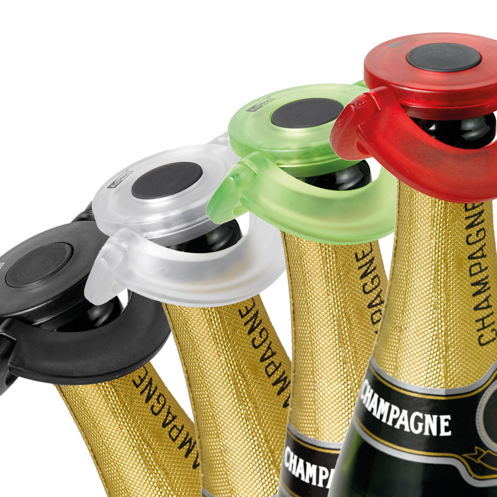 Korek do szampana GUSTO CLEAR ma bardzo niski, płaski profil, co sprawia, że idealnie sprawdzi się w przechowywaniu butelek w lodówce. Poza tym nie trzeba się obawiać o jakiekolwiek przeciekanie, gdyż, za pomocą silikonowej uszczelki oraz obrotowych uch blokujących się na szyjce butelki, całkowicie ją uszczelnia – także przy przechowywaniu poziomym. Produkt został zaprojektowany przez AdHoc Design Team oraz Stefana Koitzscha. Materiał: plastik oraz silikon. Wymiary: średnica – 8,2cm.