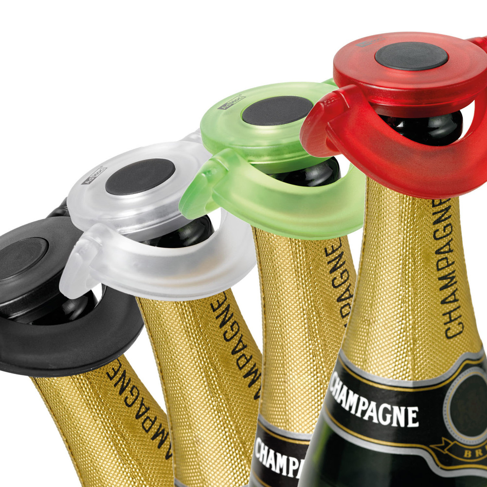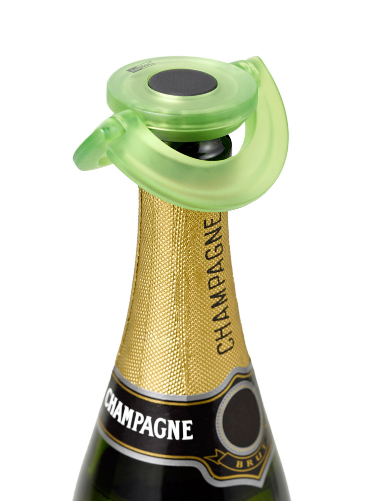 Korek do szampana GUSTO GREEN ma bardzo niski, płaski profil, co sprawia, że idealnie sprawdzi się w przechowywaniu butelek w lodówce. Poza tym nie trzeba się obawiać o jakiekolwiek przeciekanie, gdyż, za pomocą silikonowej uszczelki oraz obrotowych uch blokujących się na szyjce butelki, całkowicie ją uszczelnia – także przy przechowywaniu poziomym. Produkt został zaprojektowany przez AdHoc Design Team oraz Stefana Koitzscha. Materiał: plastik oraz silikon. Wymiary: średnica – 8,2cm.