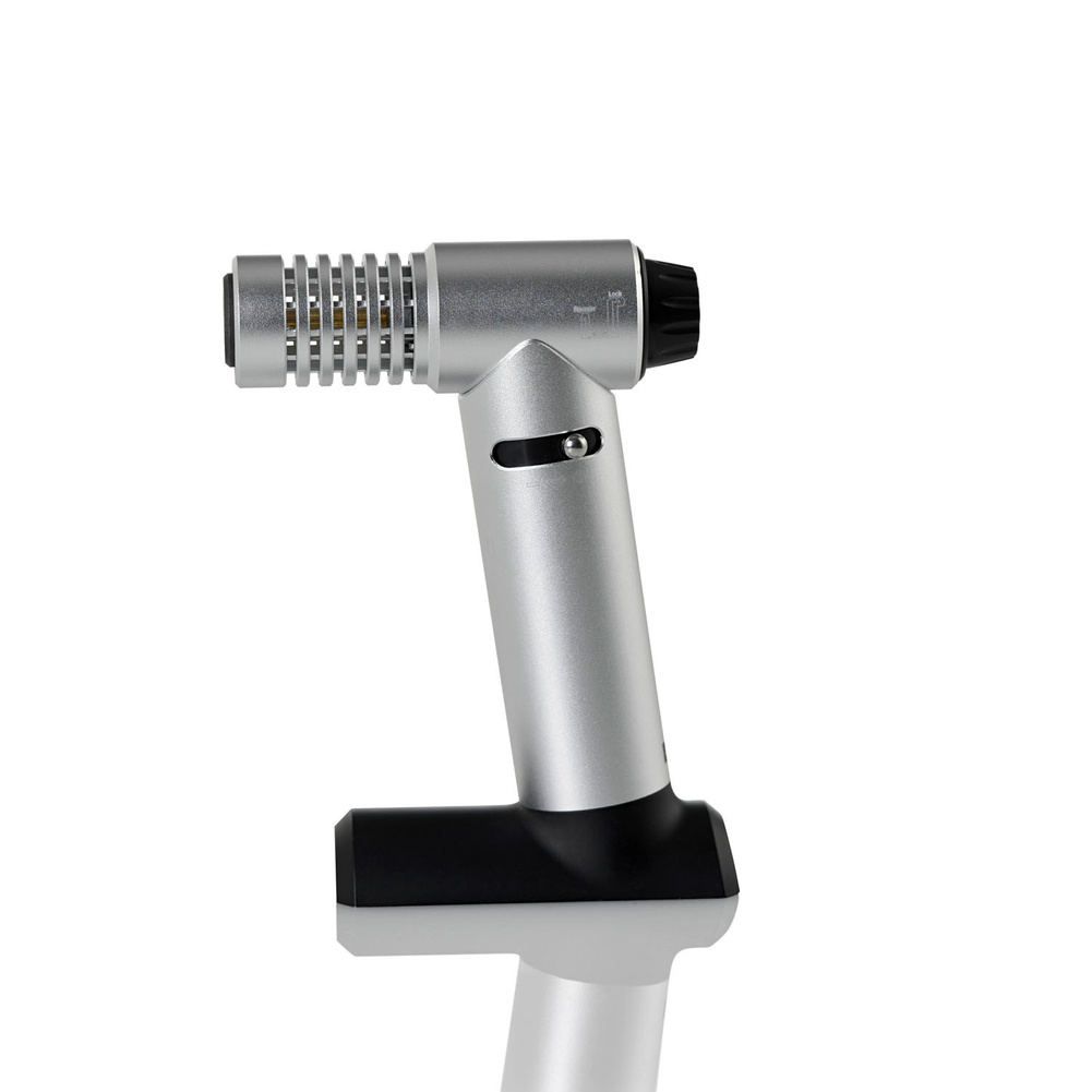 Jest to narzędzie przeznaczone do flambirowania, karmelizowania, szklenia, rozpuszczania, za pomocą którego uzyskamy także aromat pieczenia lub przypalania. Palnik odpala się naciskając na ciśnieniowy przycisk umieszczony z tyłu obudowy palnika wraz z wygodnym obrotowym mechanizmem blokującym, umożliwiającym ciągłe użycie płomienia bez potrzeby naciskania na przycisk. Z boku obudowy palnika umieszczono suwak do regulacji natężenia płomienia. Palnik posiada niezawodny piezoelektryczny starter, a do napełnienia wystarczy gaz do zapalniczek. W celu zapewnienia najwyższego poziomu bezpieczeństwa palnik wyposażono w blokadę bezpieczeństwa, zapobiegającą niezamierzonemu zapłonowi. Ten bardzo solidny produkt został zaprojektowany przez AdHoc Design Team. Materiał: metal, tworzywo sztuczne. Wymiary: długość – 10cm, szerokość – 4,3cm, wysokość – 14cm.