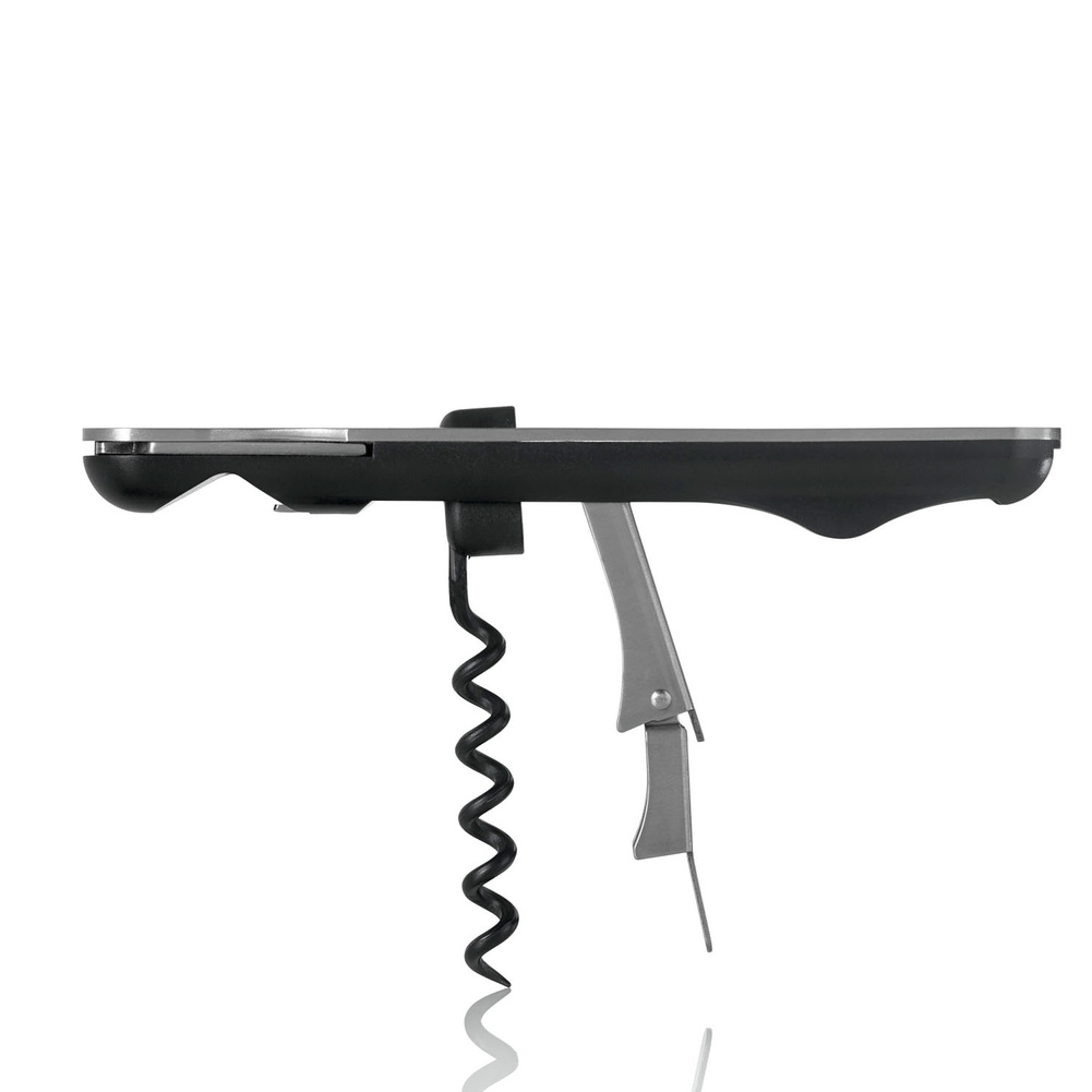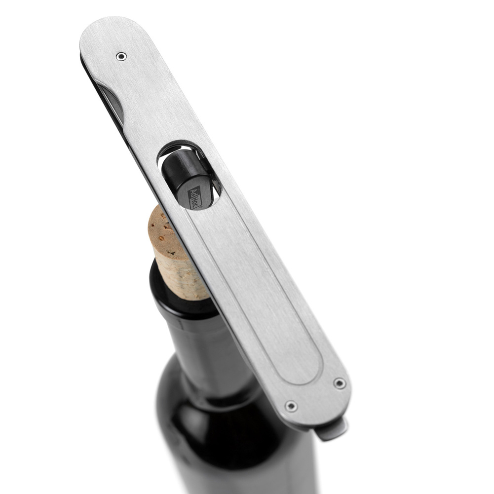 Specjalną cechą tego korkociągu jest odmienne działanie które należy wykonać w celu wyciągnięcia korka. W innych tego typu korkociągach do wyciągnięcia korka niezbędne jest ciągnięcie w górę, natomiast korkociąg PUSHPULL należy nacisnąć i wyciągnąć korek w dwóch krokach. Powlekana spirala zapewnia łatwe i delikatne wkręcanie się w korki naturalne i plastikowe. Korkociąg posiada zintegrowany odcinacz do folii i otwieracz butelek. Wszystko to składa się na zgrabne i kompaktowe narzędzie. Nie należy myć w zmywarce. Produkt został zaprojektowany przez AdHoc Design Team. Materiał: stal nierdzewna, plastik. Wymiary: długość – 15cm, szerokość – 2,1cm, wysokość – 1,6cm.