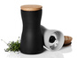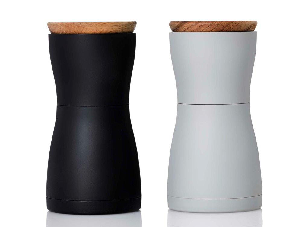 Młynki posiadają bardzo wydajne w pełni regulowane żarna CeraCut®, które są wolne od zapachów i smaków, a także są niezwykle odporne na zużycie i korozję. Młynki są zaprojektowane w taki sposób aby przechowywać je z żarnami skierowanymi ku górze, co zapewnia czystość blatu. Dodatkowo posiadają specjalne zaślepki zakrywające żarna i chroniące przyprawy. Młynki są bardzo wygodne w napełnianiu ze względu na bardzo łatwy dostęp do pojemnika na przyprawy po odkręceniu nakrętki znajdującej się po przeciwnej stronie żaren. Produkt został zaprojektowany przez AdHoc Design Team. Materiał: plastik, drewno, ceramiczne żarna CeraCut®. Wymiary: średnica – 6,2cm, wysokość – 13,3cm.
