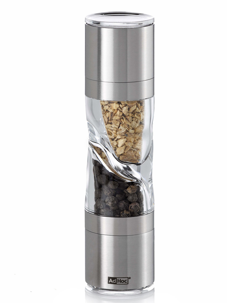 Pierwszy na świecie podwójny młynek do ziół i przypraw wyposażony zarówno w mechanizm PreciseCut® oraz ceramiczne żarna CeraCut®. Taka kombinacja sprawia, że za jego pomocą można drobniutko ciąć suszone papryczki, kminek, imbir i inne, a także mielić pieprz lub sól. Mechanizm PreciseCut® umożliwia precyzyjne cięcie suszonych ziół i przypraw uwalniając ich specyficzne aromaty, natomiast bardzo wydajne, ceramiczne żarna CeraCut® są wolne od zapachów i smaków, a także są niezwykle odporne na zużycie i korozję. Zastosowany z obydwu stron młynka kapturek chroni aromat przypraw oraz zapobiega zabrudzeniu blatu okruszkami przypraw. Produkt został zaprojektowany przez Gabriele Kaltenbach. Materiał: stal nierdzewna, akryl, ceramiczne żarna CeraCut®. Wymiary: średnica – 3,8cm, wysokość – 15cm.