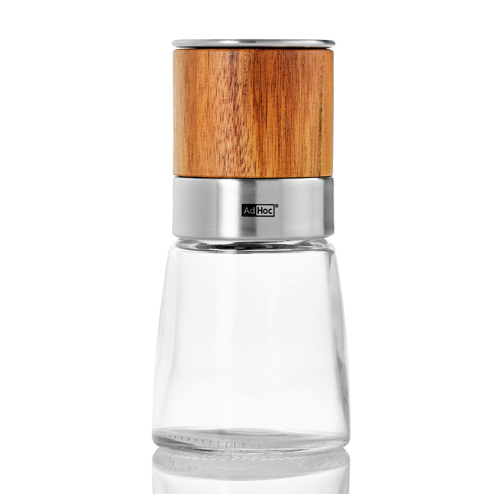 Młynek posiada bardzo wydajne w pełni regulowane żarna CeraCut®, które są wolne od zapachów i smaków, a także są niezwykle odporne na zużycie i korozję. Młynek jest zaprojektowany w taki sposób aby przechowywać go z żarnami skierowanymi ku górze, co zapewnia czystość blatu. Dodatkowo posiada specjalną zaślepkę zakrywającą żarna i chroniącą przyprawy. Natomiast zastosowane drewno akacjowe zapewnia wygodne i bezpieczne użytkowanie młynka. Cechą charakterystyczną jest duży szklany pojemnik na przyprawy. Nie należy myć w zmywarce. Produkt został zaprojektowany przez AdHoc Design Team. Materiał: drewno akacjowe, stal nierdzewna, szkło. Wymiary: średnica – 6,5cm, wysokość – 13,5cm.