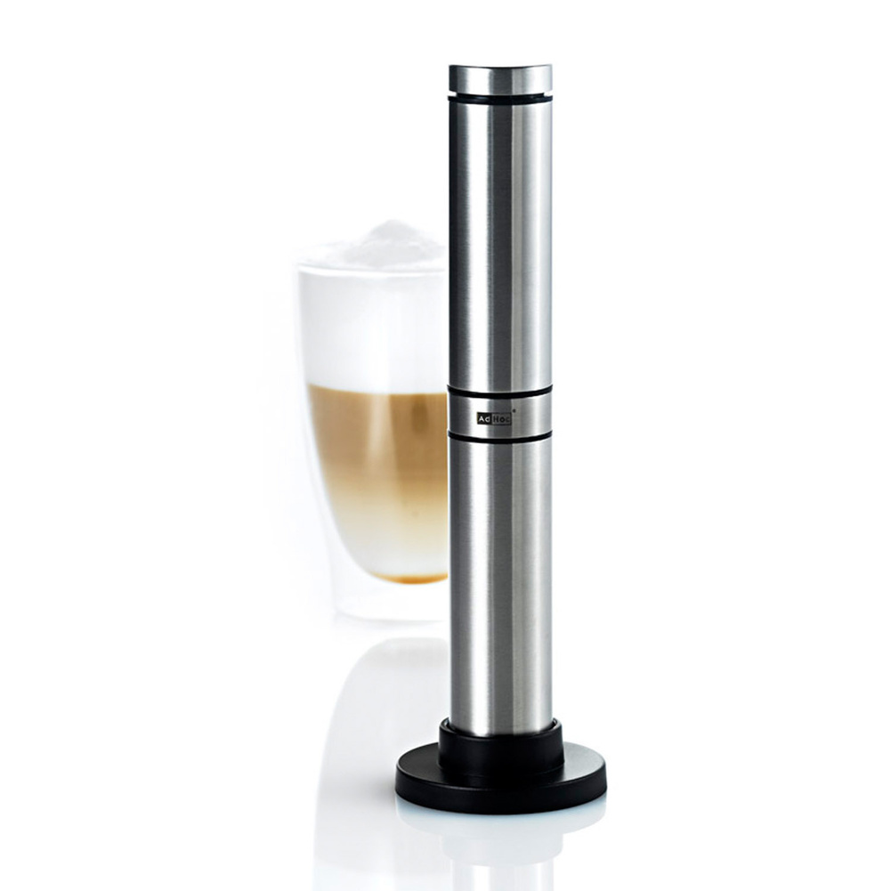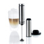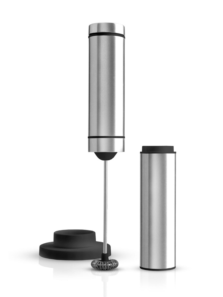 Spieniacz do mleka został wyposażony w mocny silnik o perfekcyjnym przełożeniu mocy na trzepaczkę, dzięki czemu spienianie mleka trwa bardzo krótko. Demontowany dysk spieniający można myć w zmywarce. Obudowie ze stali nierdzewnej zawdzięcza elegancki wygląd, a podstawka umożliwia wygodne przechowywanie. W zestawie zawarte są 3 baterie AAA. Produkt został zaprojektowany przez Gabriele Kaltenbach. Materiał: stal nierdzewna, plastik. Wymiary: średnica – 3cm, wysokość – 21cm. Wymiary z podstawką: średnica – 6,5cm, wysokość – 22cm.