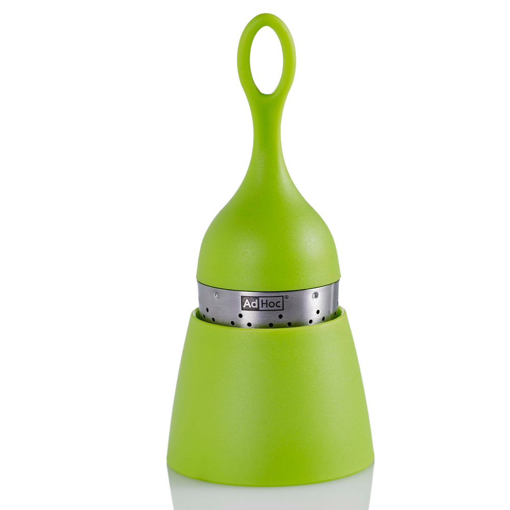 Jedyny w swoim rodzaju zaparzacz do herbaty na świecie. Można go bardzo łatwo otworzyć i napełnić, a zawarta w zestawie podstawka zbierze wszystkie krople po zakończeniu parzenia. Można myć w zmywarce. Produkt został zaprojektowany przez AdHoc Design Team. Materiał: stal nierdzewna, plastik. Wymiary: średnica – 4cm, wysokość – 12,5cm.