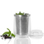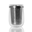Ta szklanka wprowadza picie herbaty w nową epokę. Połączenie wysokiej jakości borokrzemowego szkła oraz niezwykle precyzyjnie wykonanego filtra ze stali nierdzewnej daje wprost oszołamiający widok. Podwójne szkło borokrzemowe nie tylko jest lekkie ale także zapewnia, że zewnętrzna powierzchnia pozostaje chłodna, a znajdująca się w szklance herbata wygląda jakby była zawieszona w powietrzu. Ciekawy wzór, który tworzą pory filtra jest dopełnieniem elegancji i ciekawego wyglądu. Filtr został tak zaprojektowany, że swoimi rozmiarami wypełnia całe wnętrze szklanki, z tego względu każdy rodzaj herbaty będzie mógł rozwinąć w nim pełnię swoich aromatów. Nawet herbaty o bardzo drobnych składnikach nie będą dla tego filtra problemem, ze względu na bardzo małą średnicę wspomnianych porów. Dołączona do zestawu przykrywka może po zaparzeniu służyć jako podstawka pod filtr, na którą będą spływały krople. Produkt został zaprojektowany przez AdHoc Design Team. Materiał: szkło, stal nierdzewna. Wymiary szklanki: średnica – 9cm, wysokość – 13,5cm, pojemność – 400ml. Wymiary filtra: średnica – 7cm, wysokość – 10,5cm.