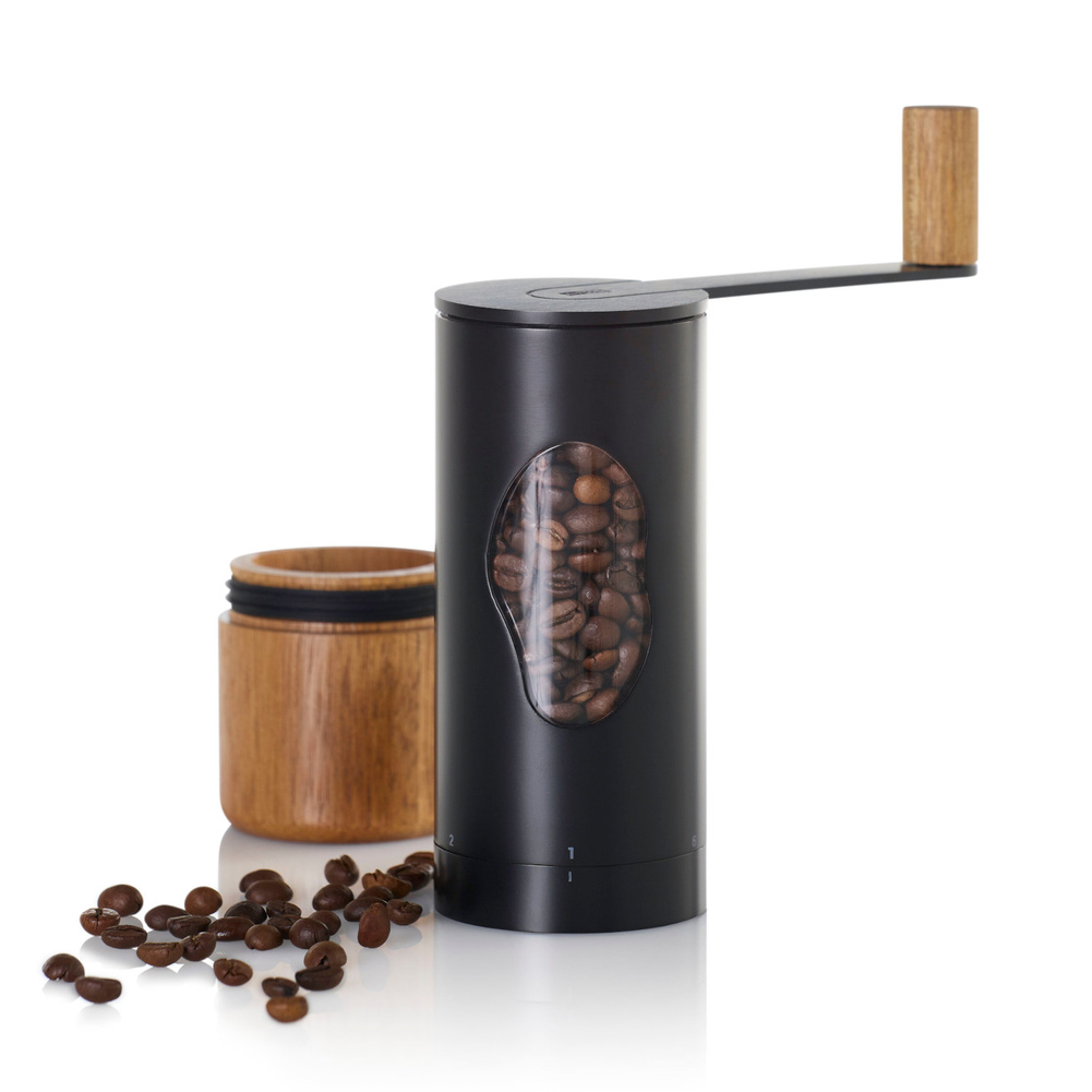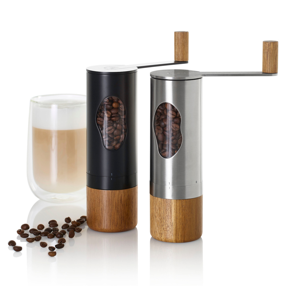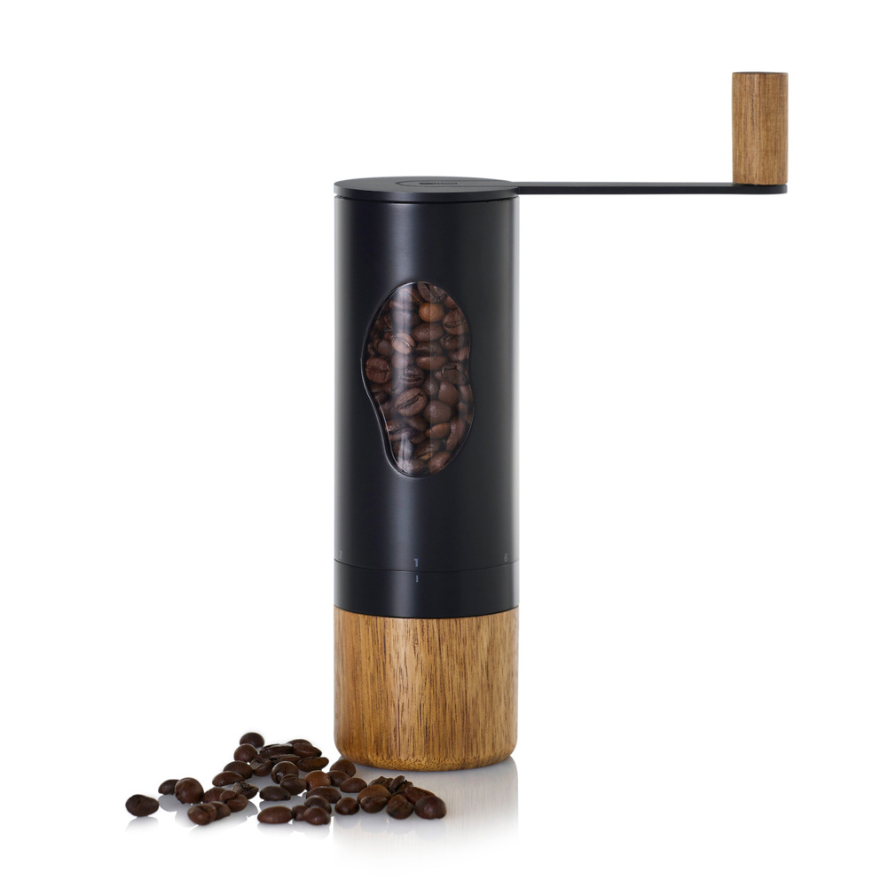 Młynek do kawy MRS. BEAN sprawia, że mielenie ziaren kawy staje się łatwe i nie wymagające wysiłku. Zastosowane w urządzeniu żarna CeraCut® są nie tylko wydajne, odporne na korozję i zużycie. Żarna są obojętne na smaki i zapachy, co za każdym razem pozwala uzyskać czysty i niezakłócony smak zmielonych ziaren kawy. Po zdjęciu pokrywy z korbką można łatwo napełnić młynek (pokrywa zakładana jest na wcisk). Pojemność zbiornika na kawę to 50g. Na spodzie młynka znajduje się drewniany, odkręcany pojemnik na zmieloną kawę jego pojemność to 25g kawy o grubości mielenia 2. Na zewnątrz młynka znajduje się 6 – stopniowa skala grubości mielenia PRECISE+®, którą można dopasować do własnych potrzeb: 1 (drobno) do 6 (grubo) zmielona. Pojemnik na zmieloną kawę jest łatwy w demontażu. Należy jedną ręką chwycić za metalową opaskę poniżej skali mielenia a drugą za drewniany pojemnik, a następnie odkręcić go zgodnie z ruchem wskazówek zegara. Oprócz tego, zastosowany system CAP ułatwia demontaż korbki, dzięki czemu napełnienie młynka jest proste. Produkt został zaprojektowany przez AdHoc Design Team. Nie należy myć w zmywarce. Materiał: Stal nierdzewna, akryl, drewno akacja. Opakowanie: kartonowe pudełko prezentowe.