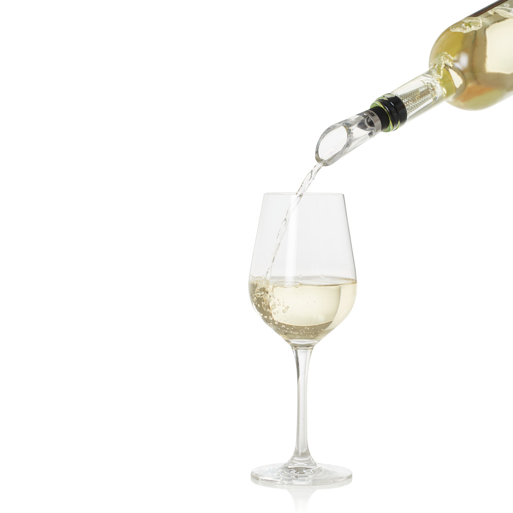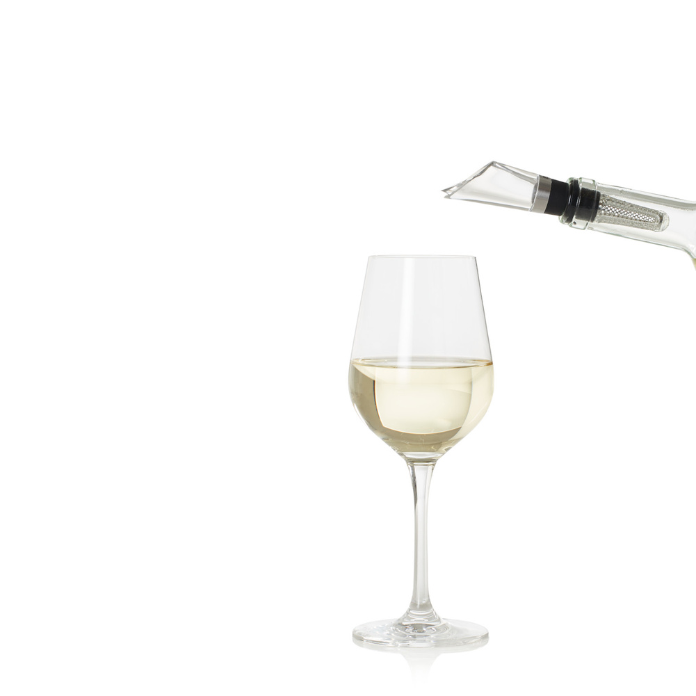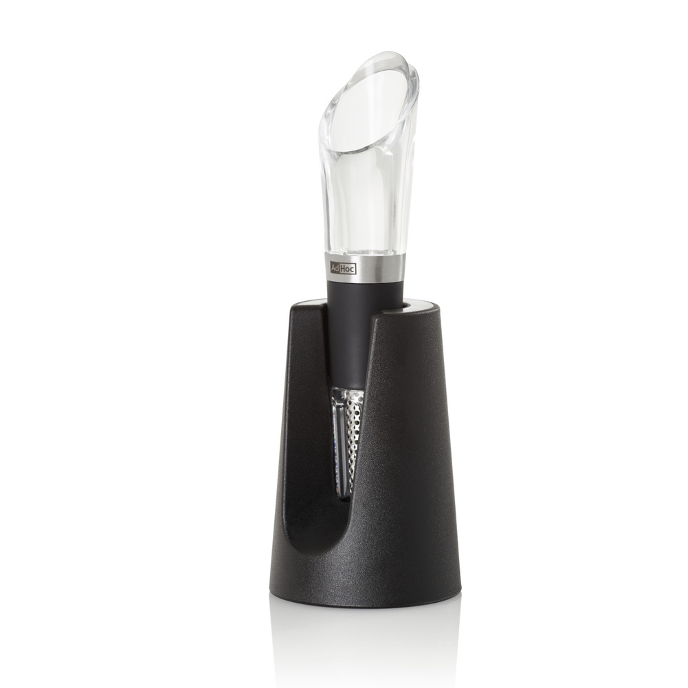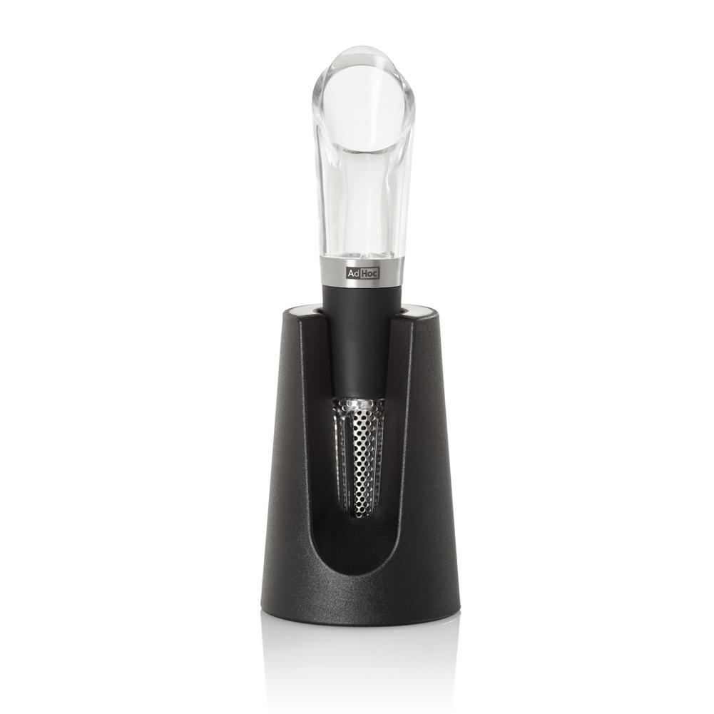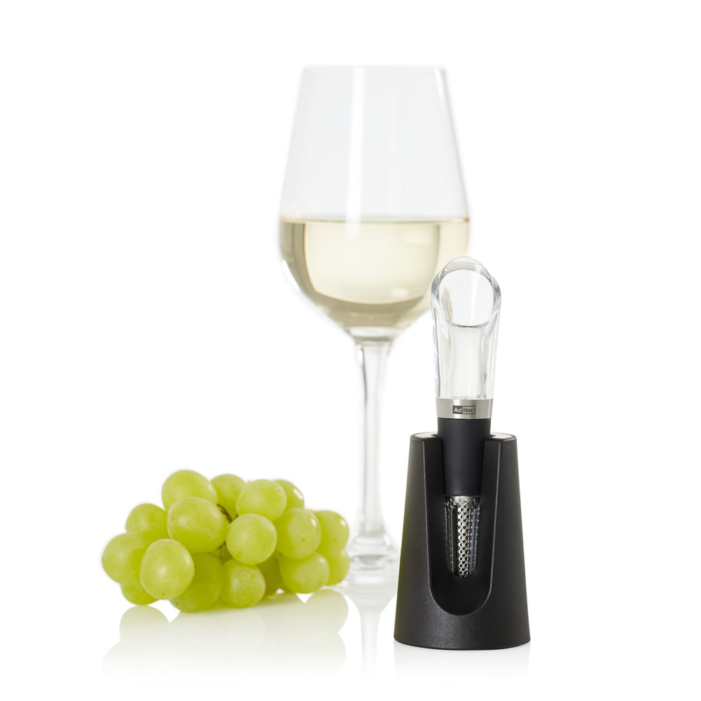 Nalewak do wina Vine to bardzo wygodne urządzenie pozwalające na nalewanie wina bez martwienia się o niesforne krople, które mogłyby poplamić stół lub obrus. Dzięki umiejętnemu wyprofilowaniu nalewak zawraca wszystkie nadmiarowe kropelki z powrotem do butelki. Oprócz tego, zawarty w nalewaku filtr, odseparuje wszystkie większe cząsteczki znajdujące się w winie. Silikonowa część nalewaka świetnie przylega do szyjki butelki zapewniając solidne i szczelne osadzenie. W zestawie znajduje się również podstawka, która w razie potrzeby posłuży jako miejsce do osuszenia nalewaka lub jego przechowywania. Zaleca się myć ręcznie. Produkt został zaprojektowany przez AdHoc Design Team. Materiał: stal nierdzewna, akryl, tworzywo sztuczne, silikon. Wymiary nalewaka: średnica – 2,7cm, wysokość – 13cm. Wymiary zestawu: średnica – 5,1cm, wysokość – 14,2cm. Przybliżone wymiary brutto: wysokość - 17,5cm, szerokość - 6,1cm, długość - 6,1cm. Opakowanie: kartonowe pudełko prezentowe.