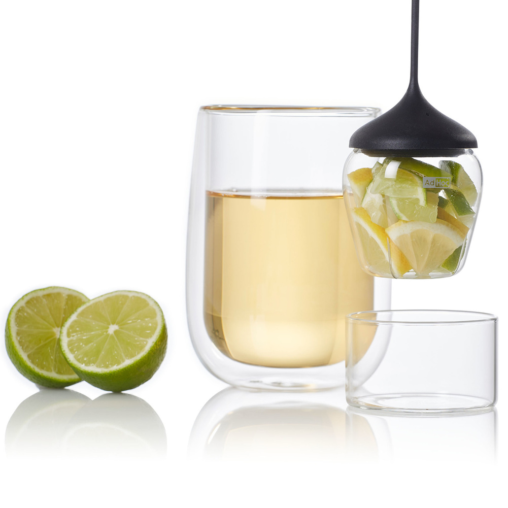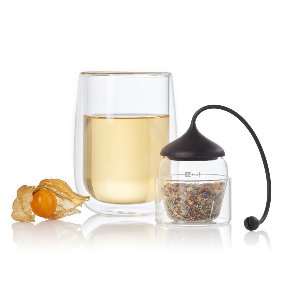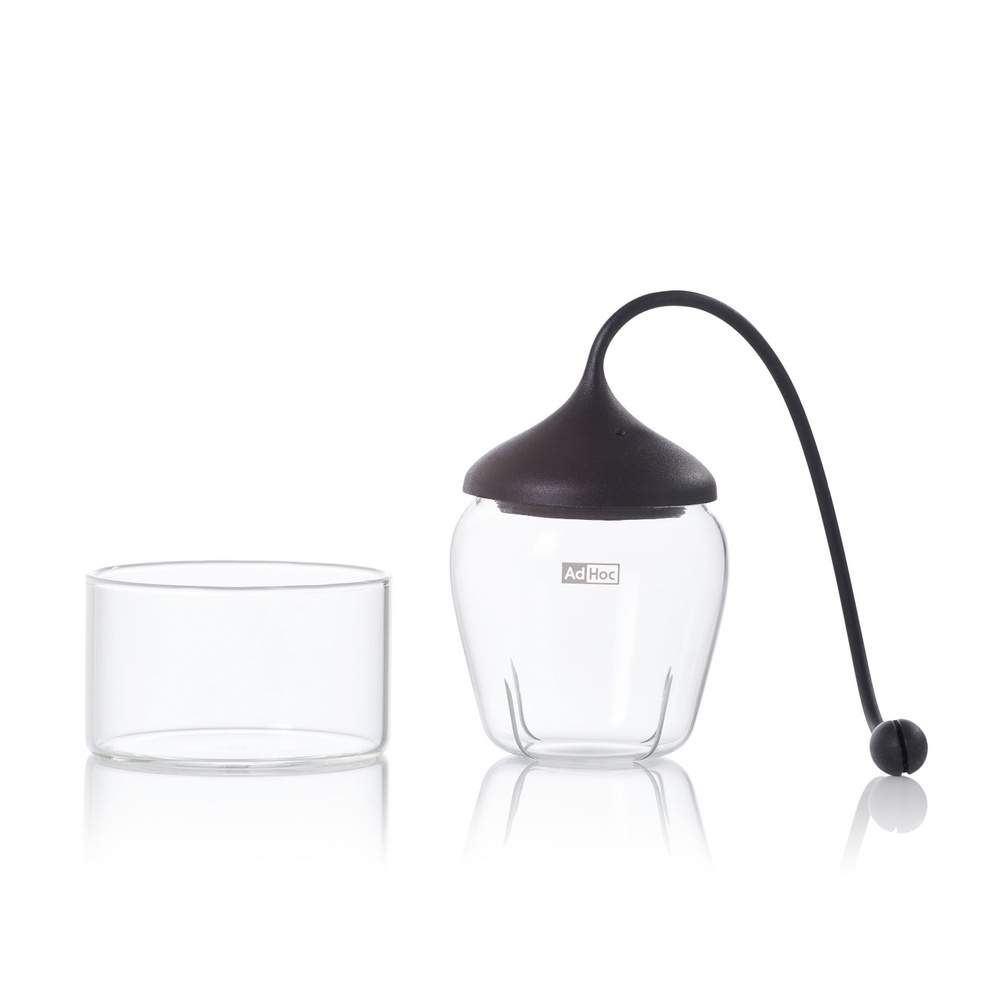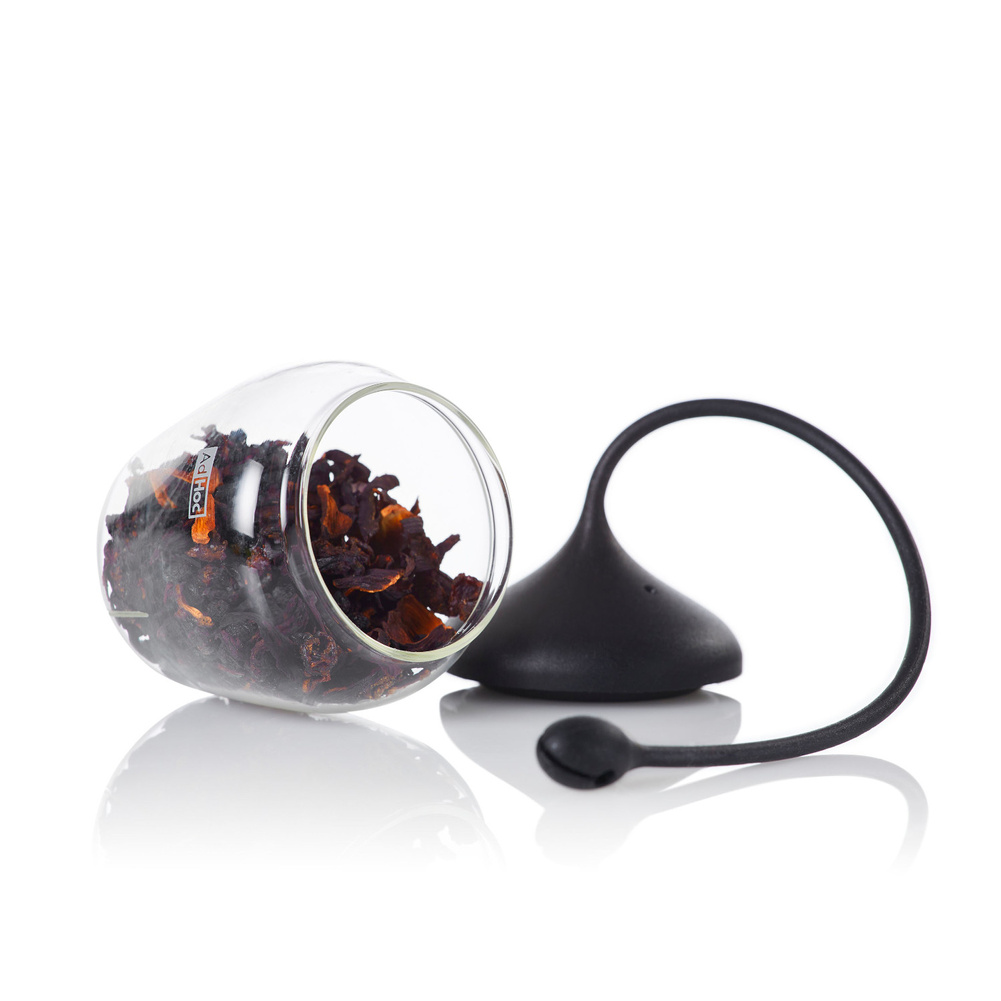 Zaparzacz został wykonany z odpornego na ciepło szkła borokrzemowego, które nie zmienia smaku naparu. Pojemność zaparzacza pozwala na optymalne rozwinięcie się nawet dużych liści herbaty oraz innych składników jak imbir czy cytryna. Za rozwinięcie bogatego aromatu naparu odpowiedzialne są podłużne nacięcia w pojemniku zaparzacza, który zamykany jest silikonowym kapturkiem ze smyczą o końcówce umożliwiającej umocowanie jej do brzegu naczynia. Aby napełnić, wystarczy ścisnąć silikonowy kapturek i go zdjąć. Pojemnik zaparzacza ma płaskie dno, dzięki czemu można go postawić na dnie naczynia. Całości dopełnia dołączona do zestawu szklana podstawka, służąca także jako miejsce do osuszania zaparzacza. Można myć w zmywarce. Produkt został zaprojektowany przez Rolanda Kreitera. Uwaga: Przy otwieraniu zaparzacza nie należy ciągnąć za silikonową smycz! Materiały: szkło, silikon. Opakowanie: kartonowe pudełko prezentowe.