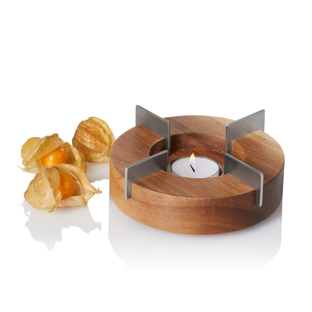 Podgrzewacz jest przeznaczony do podtrzymywania temperatury kawy lub herbaty i idealnie prezentuje się z imbryczkiem Fusion. Sprawdzi się również przy utrzymywaniu temperatury jedzenia w miskach, zapewniając im stabilną podstawę. Połączenie drewna akacjowego ze szczotkowaną stalą nierdzewną nadaje podgrzewaczowi charakteru i elegancji. Cztery silikonowe nóżki utrzymują podgrzewacz w miejscu, zabezpieczając przed przypadkowym ześliźnięciem się z blatu. Podgrzewacz należy czyścić wilgotną, miękka ściereczką. Nigdy nie należy zanurzać w wodzie. Nie należy myć w zmywarce. Produkt został zaprojektowany przez AdHoc Design Team. Materiał: drewno akacjowe, stal nierdzewna, silikon. Opakowanie: kartonowe pudełko prezentowe.