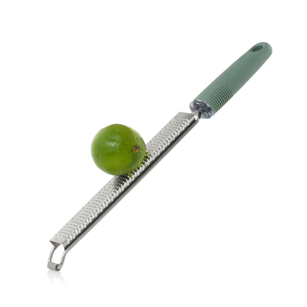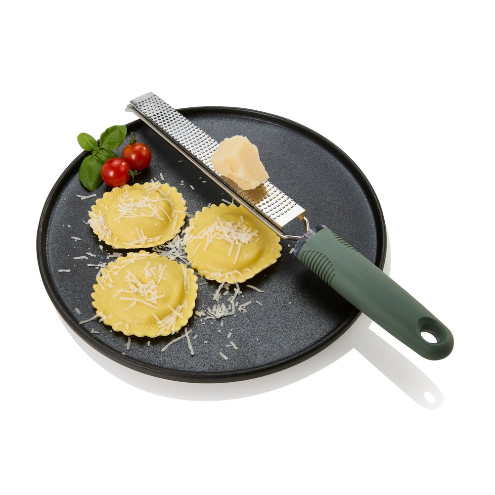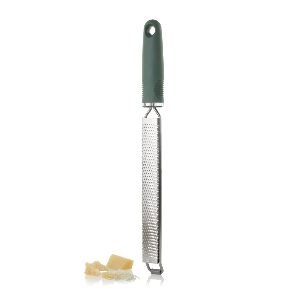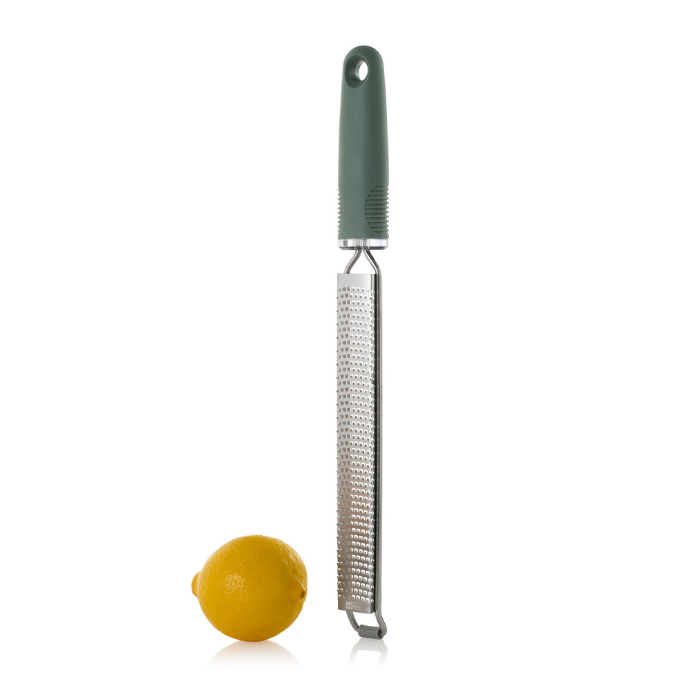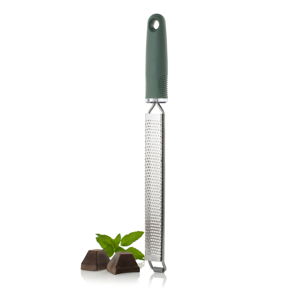Tarka GIANO posiada 494 fototrawione, ostre jak brzytwa ostrza PreciseGrate ułożone w zakrzywiony sposób, które z łatwością trą tak twarde składniki jak parmezan, czekolada, marchewka i wiele innych! Dzięki tak wysokiej ostrości ostrzy wydajność tarki nie ma sobie równych. Sztywna konstrukcja wykorzystująca ramę okalającą tarkę oraz gumowa antypoślizgowa nakładka, czynią tarkę solidną i pewną w użyciu. Nie należy myć w zmywarce. Produkt został zaprojektowany przez AdHoc Design Team. Materiał: stal nierdzewna, plastik. Opakowanie: kartonowe pudełko prezentowe.