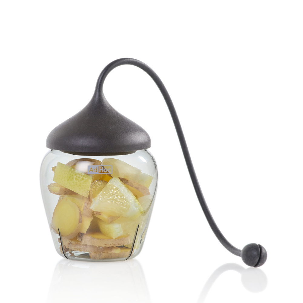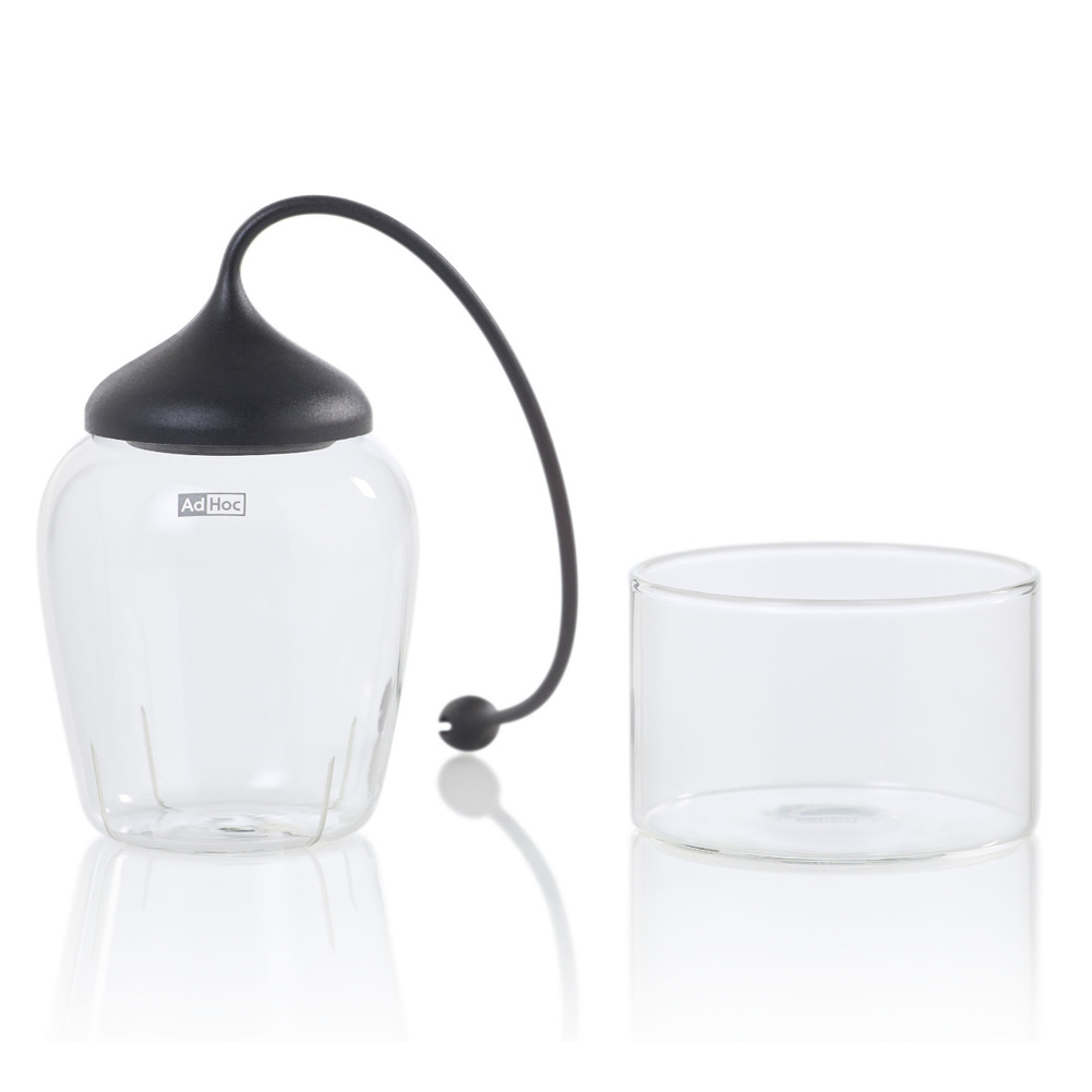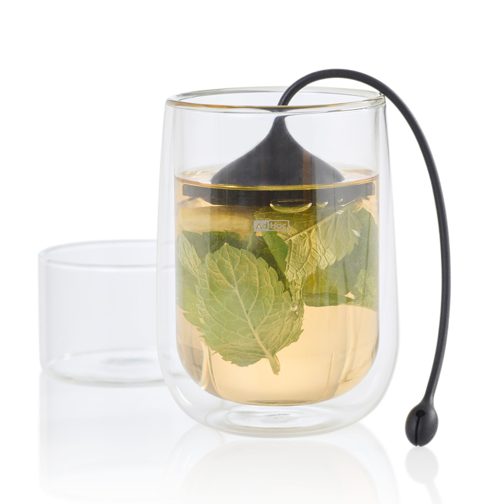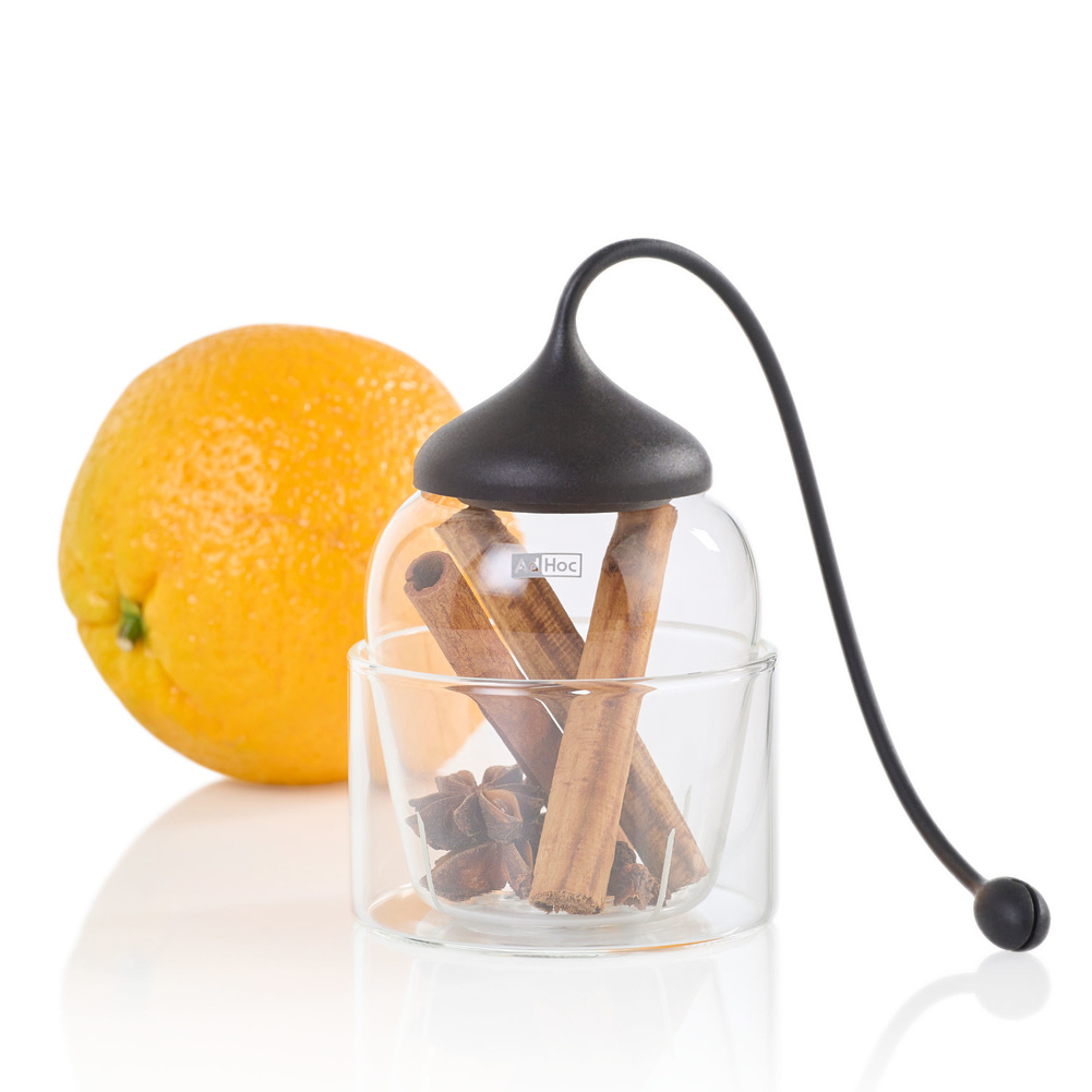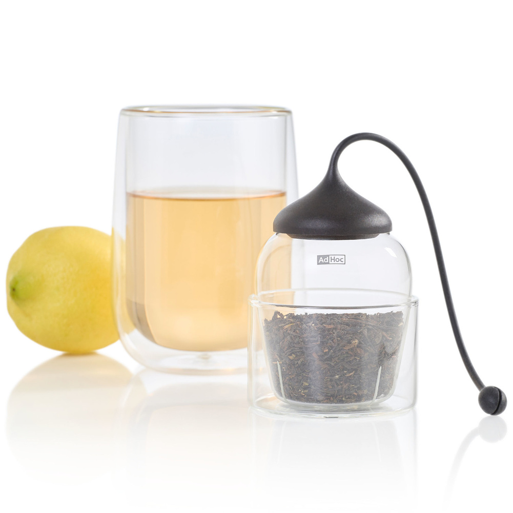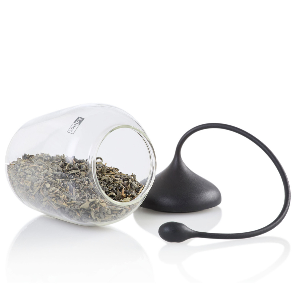 Wyjątkowo duży zaparzacz wykonany z odpornego na ciepło szkła borokrzemowego, które nie zmienia smaku naparu. Pojemność zaparzacza pozwala na optymalne rozwinięcie się nawet dużych liści herbaty oraz innych składników jak imbir czy cytryna. Za rozwinięcie bogatego aromatu naparu odpowiedzialne są podłużne nacięcia w pojemniku zaparzacza, który zamykany jest silikonowym kapturkiem ze smyczą o końcówce umożliwiającej umocowanie jej do brzegu naczynia. Aby napełnić, wystarczy ścisnąć silikonowy kapturek i go zdjąć. Pojemnik zaparzacza ma płaskie dno, dzięki czemu można go postawić na dnie naczynia. Całości dopełnia dołączona do zestawu szklana podstawka, służąca także jako miejsce do odstawienia zaparzacza. Produkt został zaprojektowany przez Rolanda Kreitera. Można myć w zmywarce. Uwaga: Przy otwieraniu zaparzacza nie należy ciągnąć za silikonową smycz! Materiały: żaroodporne szkło borokrzemowe, silikon. Przybliżone wymiary zaparzacza: średnica – 7cm, wysokość z silikonową zatyczką – 11,5cm. Wymiary podstawki: średnica – 7,7cm, wysokość – 5cm. Przybliżone wymiary brutto: wysokość - 13,5cm, długość - 11cm, szerokość - 10,2cm. Przybliżona waga brutto: 0,217kg. Opakowanie: kartonowe pudełko prezentowe.