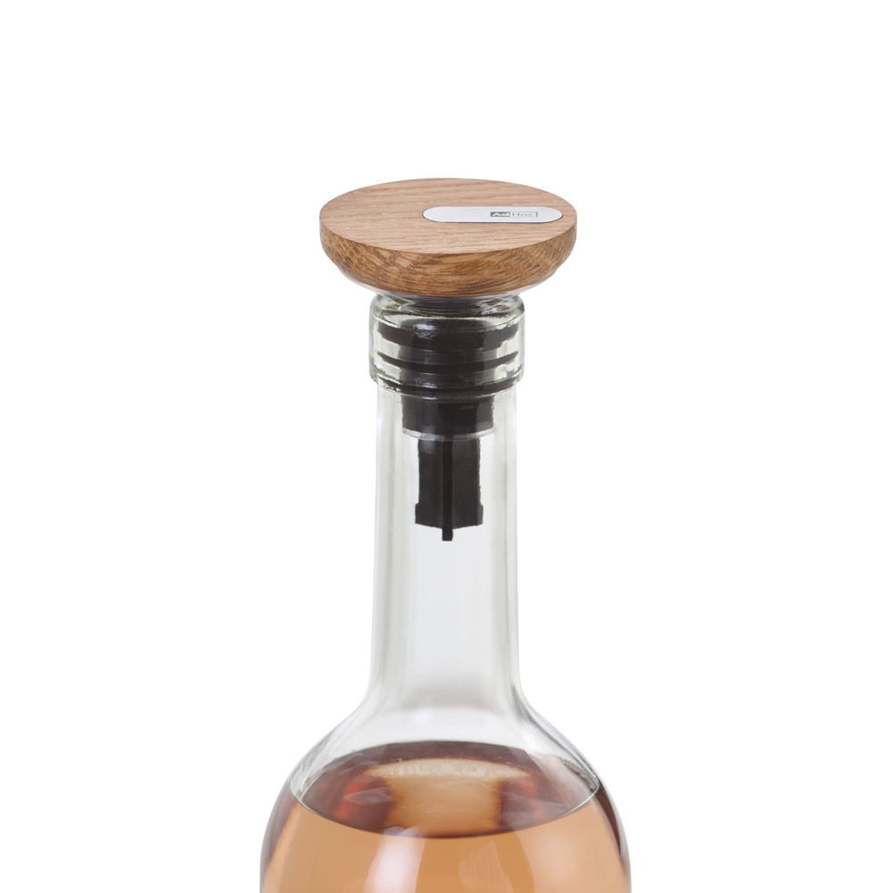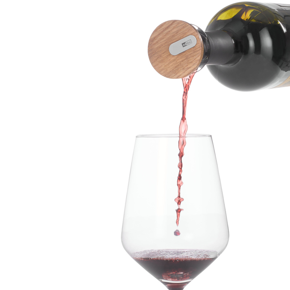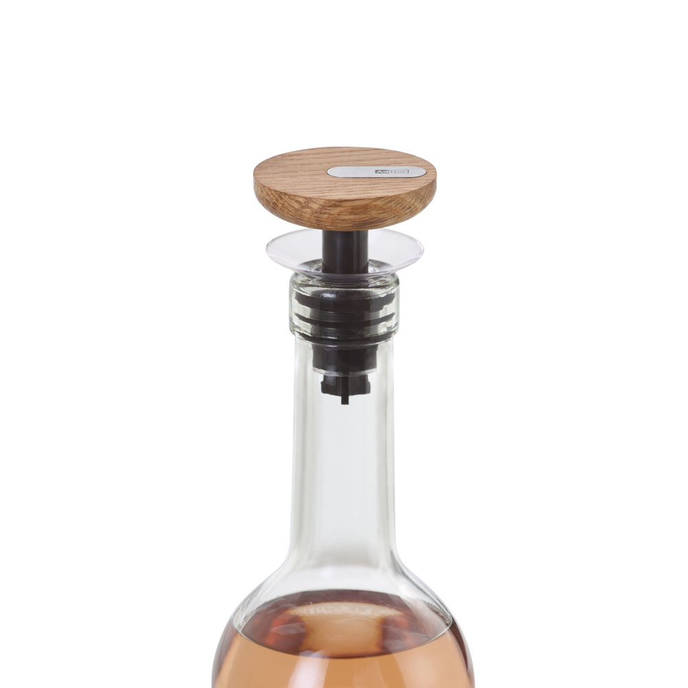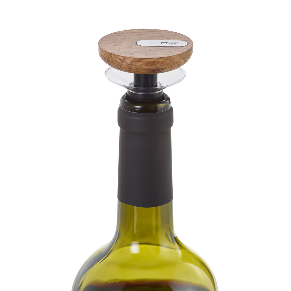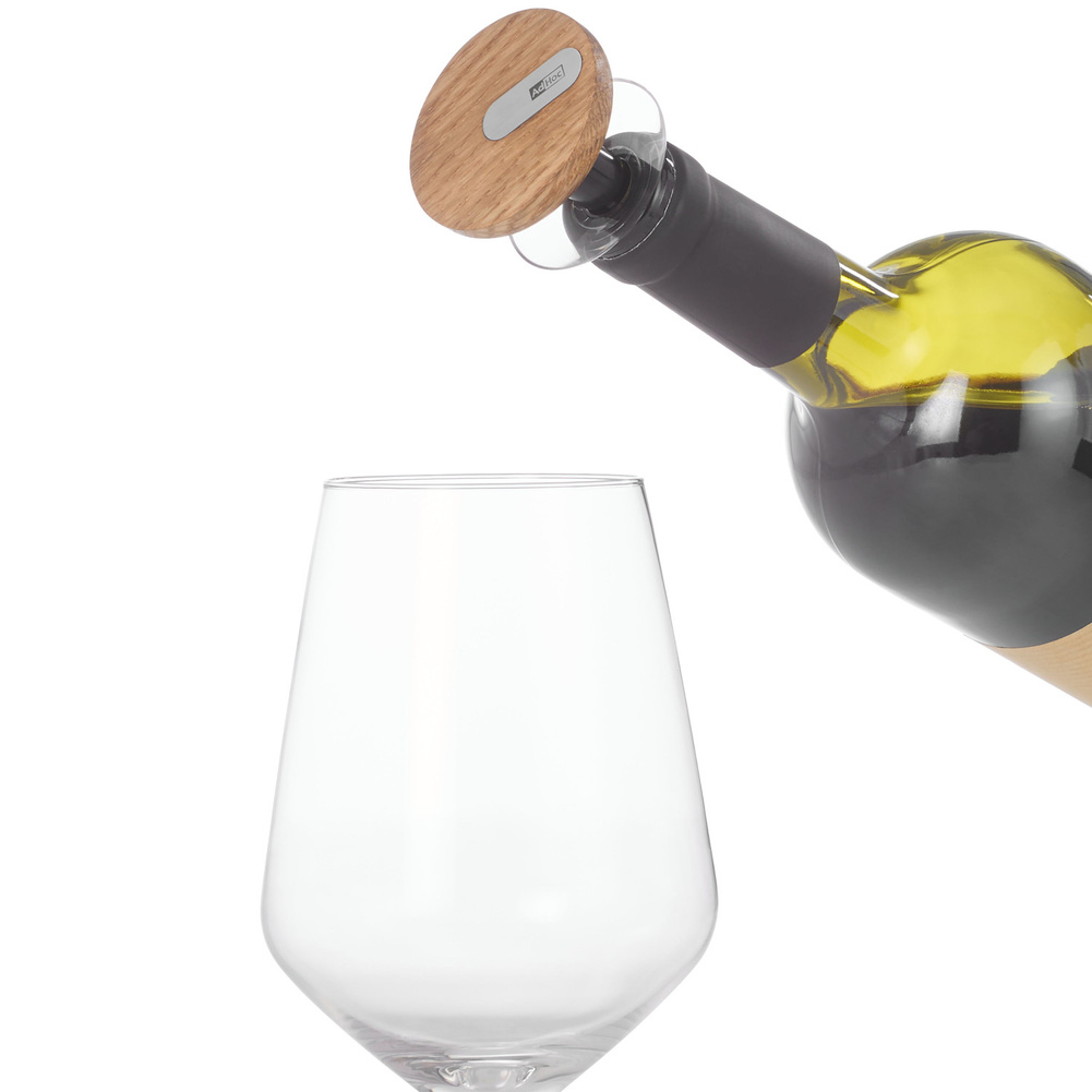 Nalewak i korek CasQ do butelki to elegancki korek z dębową główką, z nalewakiem i z silikonową uszczelką. Wyjątkowo niski i płaski co idealnie sprawdza się w przechowywaniu butelek w drzwiach lodówki. Korek zapewnia hermetyczne zamknięcie a nalewak wygodne nalewanie zapobiegając jednocześnie kapaniu. Korek jest dedykowany do przechowywania butelek z winem a szczególnie do wina czerwonego. Można go dopasować do pozostałych produktów z kolekcji CasQ. Produkt został zaprojektowany przez Roberta Franzheld. Seria „CasQ” firmy AdHoc oferuje miłośnikom wina trzy praktyczne i atrakcyjne produkty do zamykania, nalewania i przechowywania ulubionego napoju. Świetnie sprawdzi się również jako prezent, idealnie z wybranym dobrym winem! Wysokiej jakości drewno dębowe, szczotkowana stal nierdzewna i silikon dopuszczony do kontaktu z żywnością sprawiają, że kolekcja do wina „CasQ” jest wyjątkowa. Materiał: drewno dębowe, szczotkowana stal nierdzewna, plastik, silikon. Przybliżone wymiary: wysokość - 6,4cm, średnica - 4,9cm. Przybliżone wymiary brutto: wysokość - 8,8cm, długość - 5cm, szerokość - 5cm. Przybliżona waga brutto: 0,050 kg. Opakowanie: kartonowe pudełko prezentowe.