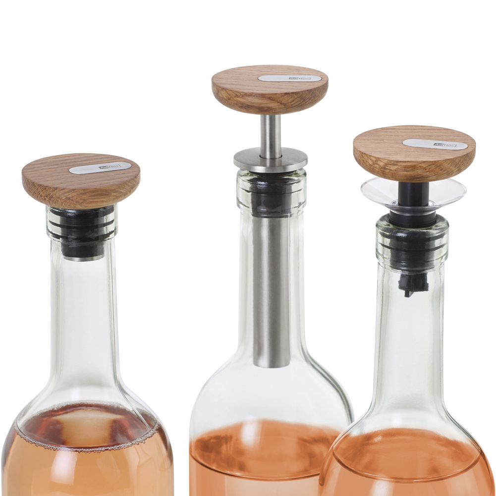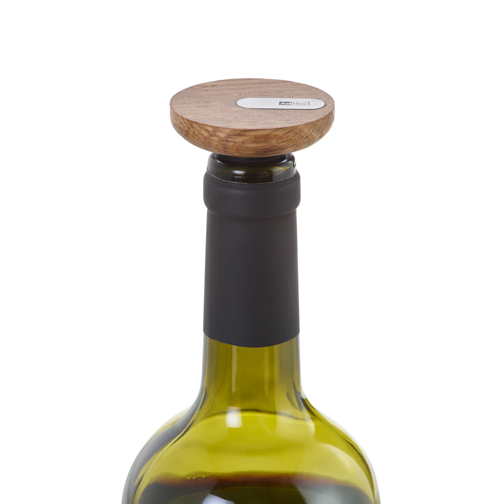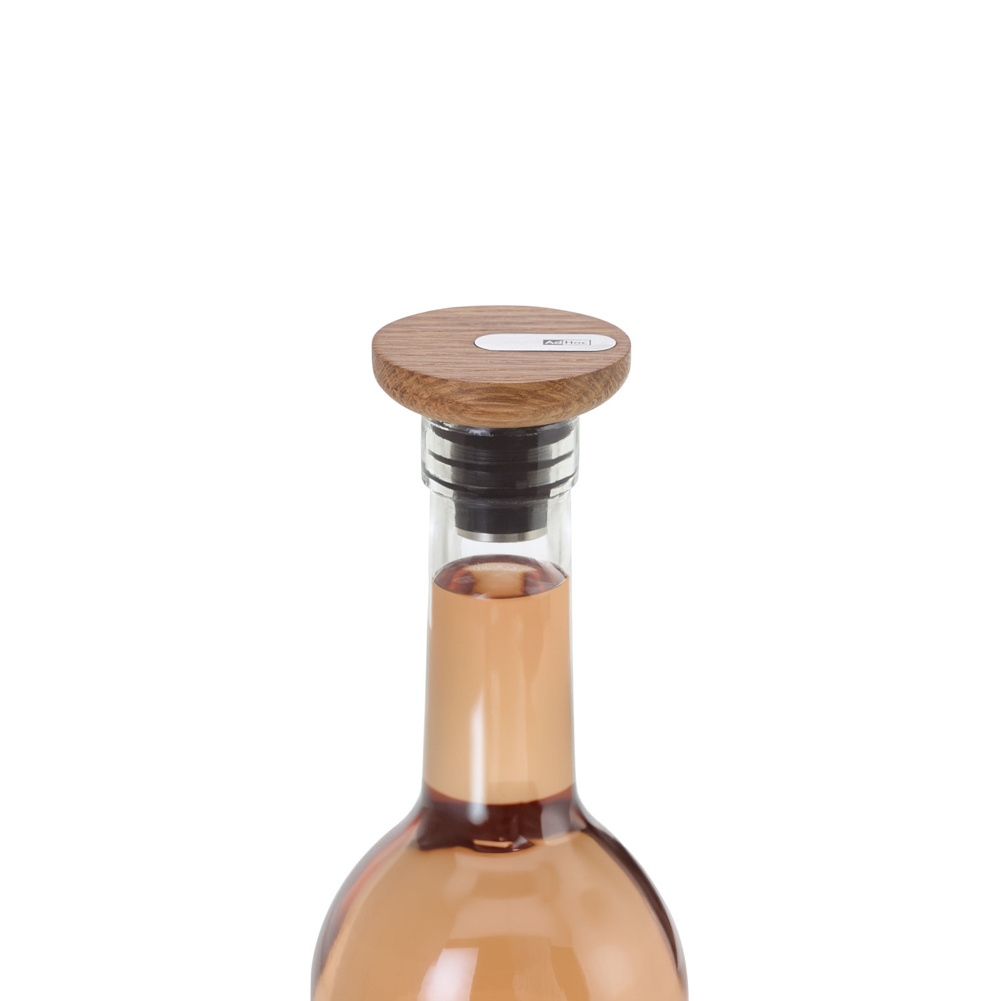 Korek CasQ z dębową główką i z z silikonową uszczelką do butelki jest wyjątkowo niski i płaski co idealnie sprawdza się w przechowywaniu butelek w drzwiach lodówki. Można go dopasować do pozostałych produktów z kolekcji CasQ. Produkt został zaprojektowany przez Roberta Franzhelda. Seria „CasQ” firmy AdHoc oferuje miłośnikom wina trzy praktyczne i atrakcyjne produkty do zamykania, nalewania i przechowywania ulubionego napoju. Świetnie sprawdzi się również jako prezent, idealnie z wybranym dobrym winem! Wysokiej jakości drewno dębowe, szczotkowana stal nierdzewna i silikon dopuszczony do kontaktu z żywnością sprawiają, że kolekcja do wina „CasQ” jest wyjątkowa. Materiał: drewno dębowe , stal nierdzewna oraz silikon. Przybliżone wymiary: średnica - 4,9cm, wysokość - 3.7cm. Przybliżone wymiary brutto: wysokość - 9cm, długość - 5,5cm, szerokość - 5,5cm. Przybliżona waga brutto: 0,045kg. Opakowanie: kartonowe pudełko prezentowe.
