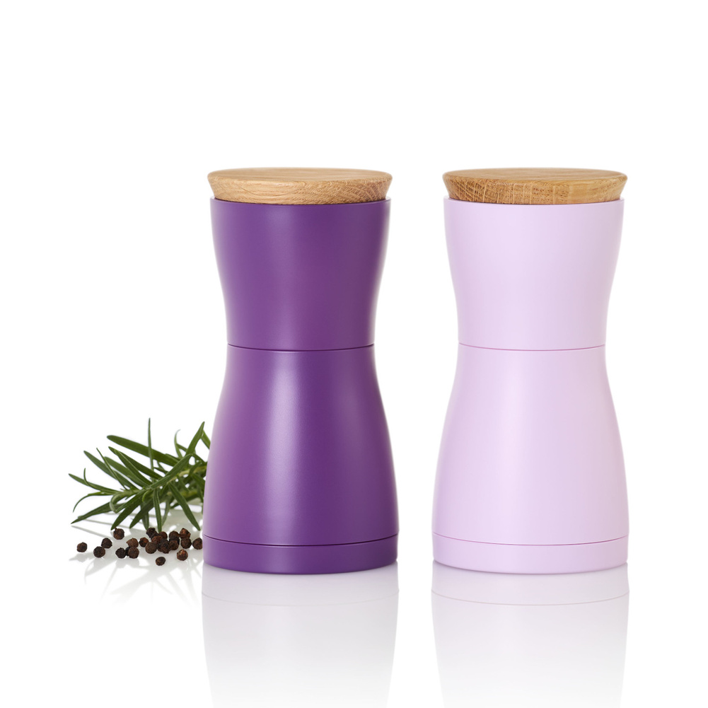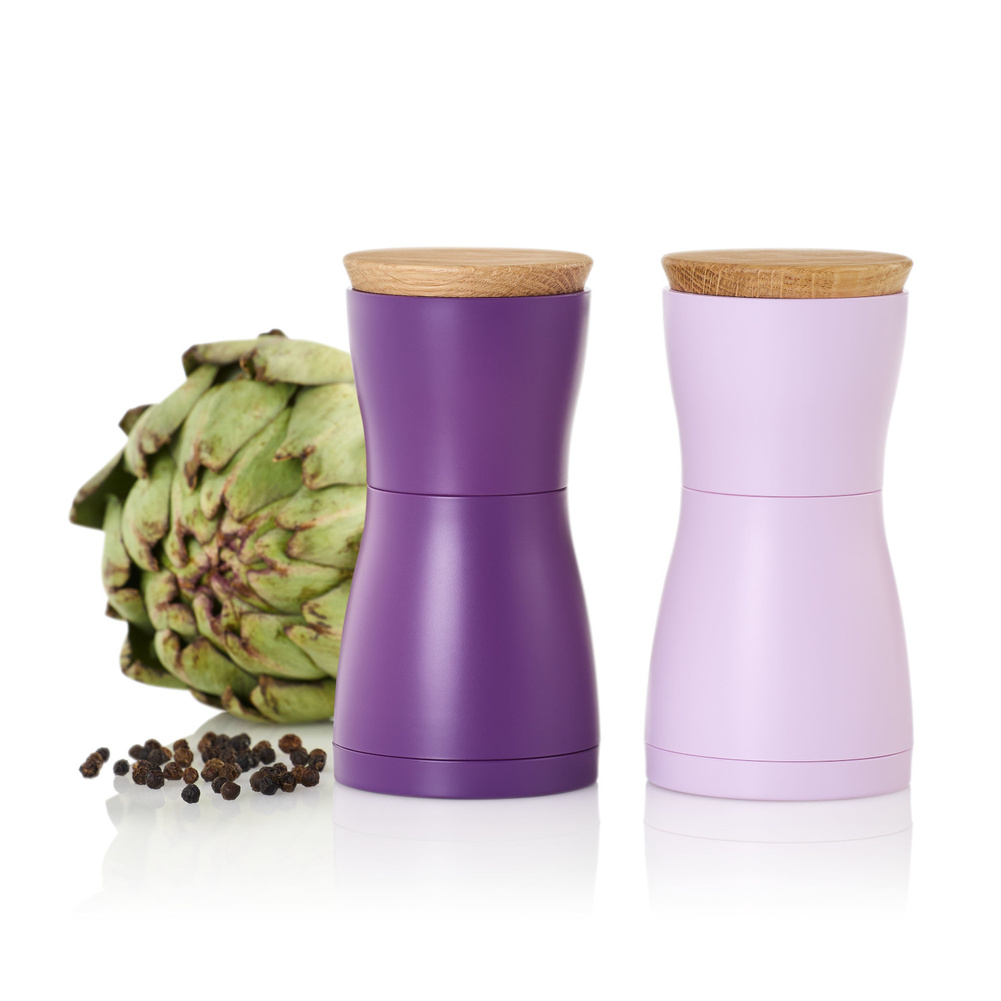 Zestaw młynków Twin został wykonany z tworzywa sztucznego uformowanego w smukły, przyjemnie spoczywający w dłoni kształt. Ceramiczne żarna osadzone na trzpieniu ze stali nierdzewnej, charakteryzują się odpornością na korozję i nie przenoszą smaków oraz zapachów, dzięki czemu smak przypraw pozostaje zawsze nieskazitelny. Zaś szeroki zakres regulacji grubości mielenia za każdym razem pozwala na uzyskanie zamierzonego efektu. Drewniana przykrywka nie tylko szczelnie chroni przed kurzem żarna, ale ogranicza wietrzenie przypraw. Młynki Twin mają spory pojemnik na przyprawy zamykany szeroką pokrywką. Młynek został zaprojektowany przez AdHoc Design Team. Nie należy myć w zmywarce. Materiał: tworzywo, zatyczka drewno, stal nierdzewna, żarna ceramika. Przybliżone wymiary młynka: wysokość - 13,5cm, średnica góra - 6,3cm, średnica dół - 6,8cm. Przybliżone wymiary brutto: wysokość - 16,5cm, długość - 14,5cm, szerokość - 7,3cm. Przybliżona waga brutto: 0,381kg. Opakowanie: kartonowe pudełko prezentowe.