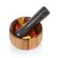 Moździerz Taru o pojemności 190ml, która rozbudzi kuchenną kreatywność. Wykonany z naturalnych materiałów ułatwi miażdżenie i ścieranie zarówno wysuszonych jak i świeżych ziół oraz przypraw, uwalniając pełnię smaków. Kształt tłuczka oraz misy są idealnie dopasowane, aby umożliwić wszechstronne użytkowanie. Miska została wykonana z antybakteryjnego drewna akacjowego, natomiast tłuczek z neutralnego smakowo granitu. Produkt został zaprojektowany przez Rolanda Kreitera. Zaleca się czyścić ręcznie! Materiał: miska drewno akacjowe, granit. Przybliżone wymiary miski: średnica - 11,5cm, wysokość - 6cm. Przybliżone wymiary tłuczka: średnica - 4cm, wysokość - 14cm. Przybliżone wymiary brutto: wysokość - 11,2cm, długość - 11,6cm, szerokość - 12,7cm. Przybliżona waga brutto: 0,596kg. Opakowanie: kartonowe pudełko prezentowe.