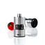 Młynek posiada bardzo wydajne w pełni regulowane żarna CeraCut®. Żarna CeraCut® są nie tylko wydajne, odporne na korozję i zużycie, ale przede wszystkim nie chłoną zapachów. Akrylowy pojemnik na przyprawy pozwala obserwować poziom ich zużycia. Bardzo mały, kompaktowy rozmiar młynka czyni go idealnym kompanem podróży. Produkt został zaprojektowany przez AdHoc Design Team. Aby napełnić młynek należy odkręcić górną śrubę, a następnie zdjąć metalowy element. Następnie napełniamy przyprawą. Nigdy nie ubijaj wsypanych przypraw, aby wsypać więcej. Pozostaw przestrzeń na górze pojemnika, aby móc swobodnie go zamknąć. Zwracaj uwagę na jakość przypraw, szczególnie czy nie są zanieczyszczone. Górna śruba służy też do regulacji jeśli chcemy bardziej rozdrobnić należy przekręcić śrubę mocującą zgodnie ze wskazówkami zegara, a jeśli chcemy większe kawałki to przekręcamy w przeciwnym kierunku do ruchu wskazówek zegara. Przed przystąpieniem do regulacji upewnij się, że żarna są czyste i nie ma zakleszczonych kawałków przypraw. Uwaga: Nigdy nie miel, jeżeli zbiornik na przyprawy jest pusty, może to doprowadzić do uszkodzenia żaren! Nie należy myć w zmywarce. Czyścimy lekko wilgotną, miękka ściereczką. Nigdy nie należy młynka zanurzać w wodzie. Żarna można oczyścić delikatnie szczoteczką. Materiał: stal nierdzewna, akryl. Przybliżone wymiary: wysokość - 6,2cm, średnica - 3,2cm. Przybliżone wymiary brutto: wysokość - 7cm, długość - 3,8cm, szerokość - 3,8cm. Przybliżona waga brutto: 0,083kg. Opakowanie: kartonowe pudełko prezentowe.