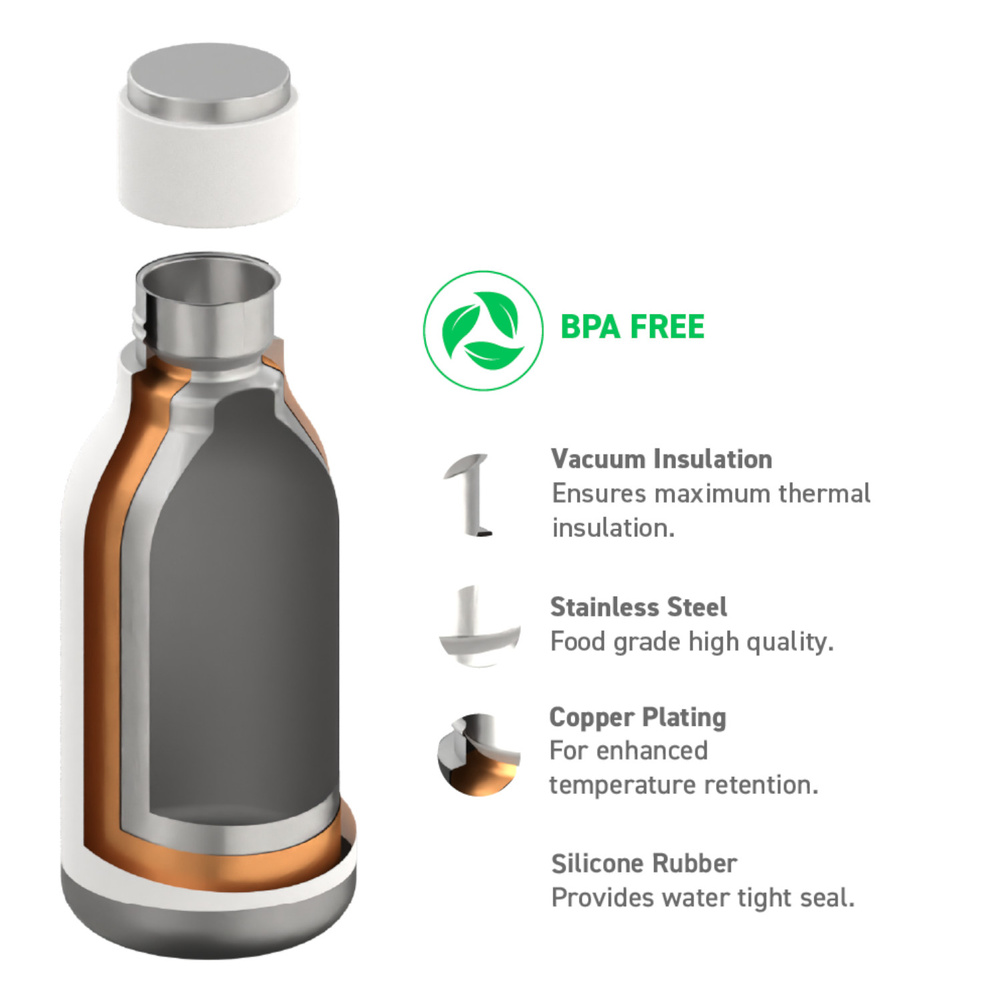 Popijaj stylowo z butelką ASOBU z linii Urban! Minimalistyczny, nowoczesny kształt pasuje do każdego zestawu, izolowana próżniowo, z podwójnymi ściankami utrzymuje napoje zimne aż do 24 godzin. Malowana proszkowo nie tylko super wygląda i jest łatwa do uchwycenia, ale przede wszystkim to praktyczna i wytrzymała butelka, która starczy Ci na długo. Butelka dostępna jest w wielu kolorach i wzorach. W trosce o środowisko i zdrowie produkty ASOBU wykonane są z trwałych i bezpiecznych materiałów jak stal nierdzewna 18/8, tritan i tworzywa BPA FREE. Tworzywo BPA Free oznacza, że jest bezpieczne i wolne od szkodliwych substancji. Dwuścienna konstrukcja butelek/termosów nie tylko dłużej utrzymuje temperaturę, ale też zapobiega kondensacji. Dwuścienne ścianki wewnątrz są pokryte dodatkowo miedzią dla jeszcze lepszej izolacji. Zalecenia: - Przed pierwszym użyciem umyj wszystkie elementy naczynia ręcznie. - Przed napełnieniem, zimnym lub gorącym płynem zaleca się butelkę przepłukać odpowiednio zimną lub gorącą wodą. - Pij ostrożnie z butelki szczególnie jeśli została napełniona gorącym płynem! Uwaga: 1. Produkt nieodpowiedni dla dzieci poniżej 7 roku życia. 2. Nie należy zamrażać lub podgrzewać butelki/termosu na płytach kuchennych, w piekarniku lub kuchence mikrofalowej, butelka służy do napełniania płynem i nie jest odpowiednim naczyniem do podgrzewania lub zamrażania. 3. Nie należy wlewać napojów gazowanych, produktów mlecznych i żywności dla dzieci ze względu na ryzyko rozwoju bakterii. 4. Nie należy umieszczać kostek lodu wewnątrz. 5. Butelka nie służy do przechowywania wody, czy innych płynów dłużej niż 24 godziny. 6. Wszystkie elementy butelek/termosów należy myć ręcznie, gąbką i płynem do naczyń. Umyte naczynie należy dokładnie osuszyć i pozostawić do doschnięcia w suchym dobrze wentylowanym miejscu. 7. Nie należy stosować agresywnych środków czyszczących takich jak chlor, wybielacz czy też soda. Materiał: stal nierdzewna 18/8, tworzywo BPA Free, silikon, miedź. Przybliżone wymiary: wysokość - 19cm, średnica - 7,3cm, pojemność: 460ml. Przybliżone wymiary brutto: wysokość - 21cm, średnica - 9,5cm. Przybliżona waga brutto: 0,324kg. Opakowanie: kolorowy karton prezentowy.