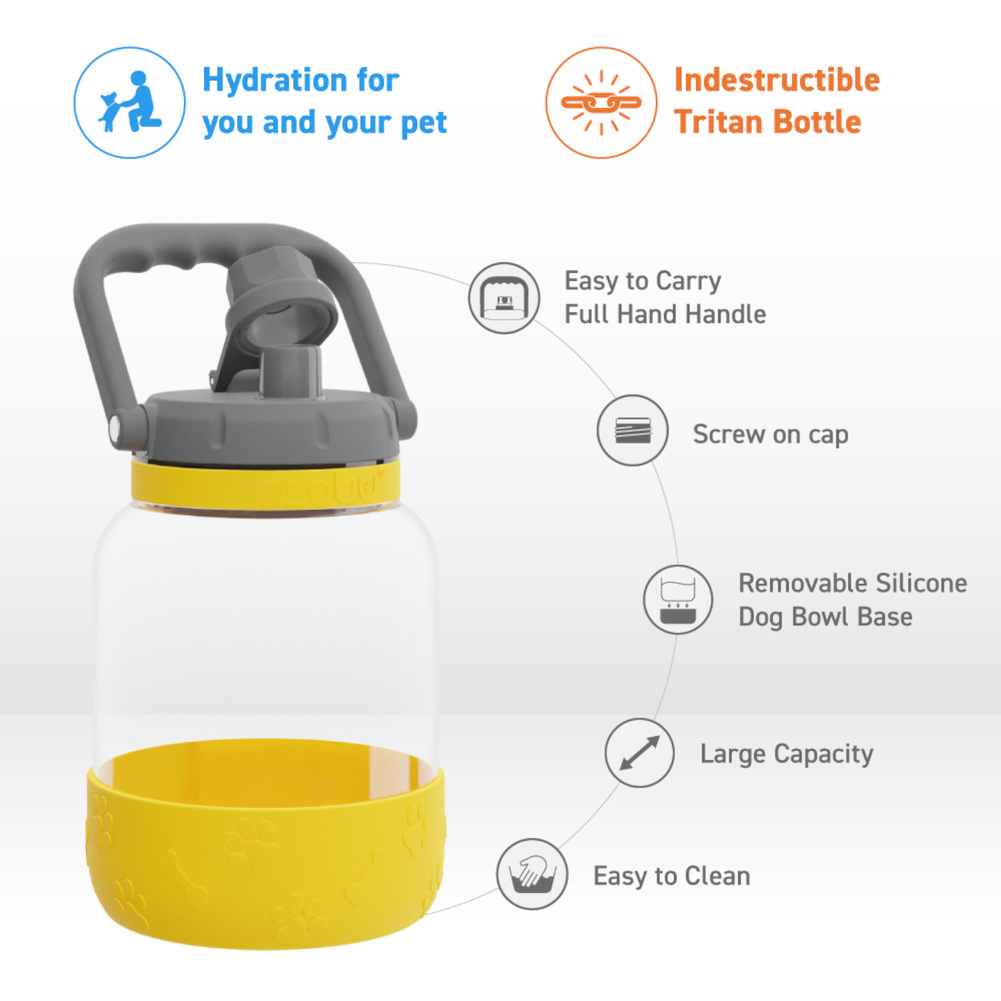 Stworzona z myślą o długich spacerach z najlepszym przyjacielem, butelka ASOBU Smoke Barkley pomoże w właściwym nawodnieniu Tobie i Twojemu pupilowi! Butelka, wykonana jest z prawie nietłukącego się, lekkiego plastiku Tritan, na dole silikonowa, nakładana miska dla psa, która dodatkowo chroni butelkę. Poręczny, szeroki uchwyt do przenoszenia sprawia, że idealnie nadaje się na całodniową wędrówkę lub bieganie po parku. W trosce o środowisko i zdrowie produkty ASOBU wykonane są z trwałych i bezpiecznych materiałów jak stal nierdzewna 18/8, tritan i tworzywa BPA FREE. Tworzywo BPA Free oznacza, że jest bezpieczne i wolne od szkodliwych substancji. Zalecenia: - Przed pierwszym użyciem umyj wszystkie elementy naczynia ręcznie. Uwaga: 1. Nie należy zamrażać lub podgrzewać butelki na płytach kuchennych, w piekarniku lub kuchence mikrofalowej, butelka służy do napełniania płynem i nie jest odpowiednim naczyniem do podgrzewania lub zamrażania. 2. Nie należy wlewać napojów gazowanych, produktów mlecznych i żywności dla dzieci ze względu na ryzyko rozwoju bakterii. 3. Nie należy umieszczać kostek lodu wewnątrz. 4. Butelka nie służy do przechowywania wody, czy innych płynów dłużej niż 24 godziny. 5. Wszystkie elementy butelki należy myć ręcznie, gąbką i płynem do naczyń. Umyte naczynie należy dokładnie osuszyć i pozostawić do doschnięcia w suchym dobrze wentylowanym miejscu. 6. Nie należy stosować agresywnych środków czyszczących takich jak chlor, wybielacz czy też soda. Materiał: tritan, tworzywo BPA FREE, silikon. Przybliżone wymiary całości: wysokość - 21cm, średnica - 14cm, średnica dół - 12,5cm, pojemność: 1,48l. Przybliżone wymiary miski: wysokość - 5cm, średnica - 12,5cm, Przybliżone wymiary brutto: wysokość - 21,5cm, długość - 13cm, szerokość - 14cm. Przybliżona waga brutto: 0,467kg. Opakowanie: kartonowe pudełko prezentowe.