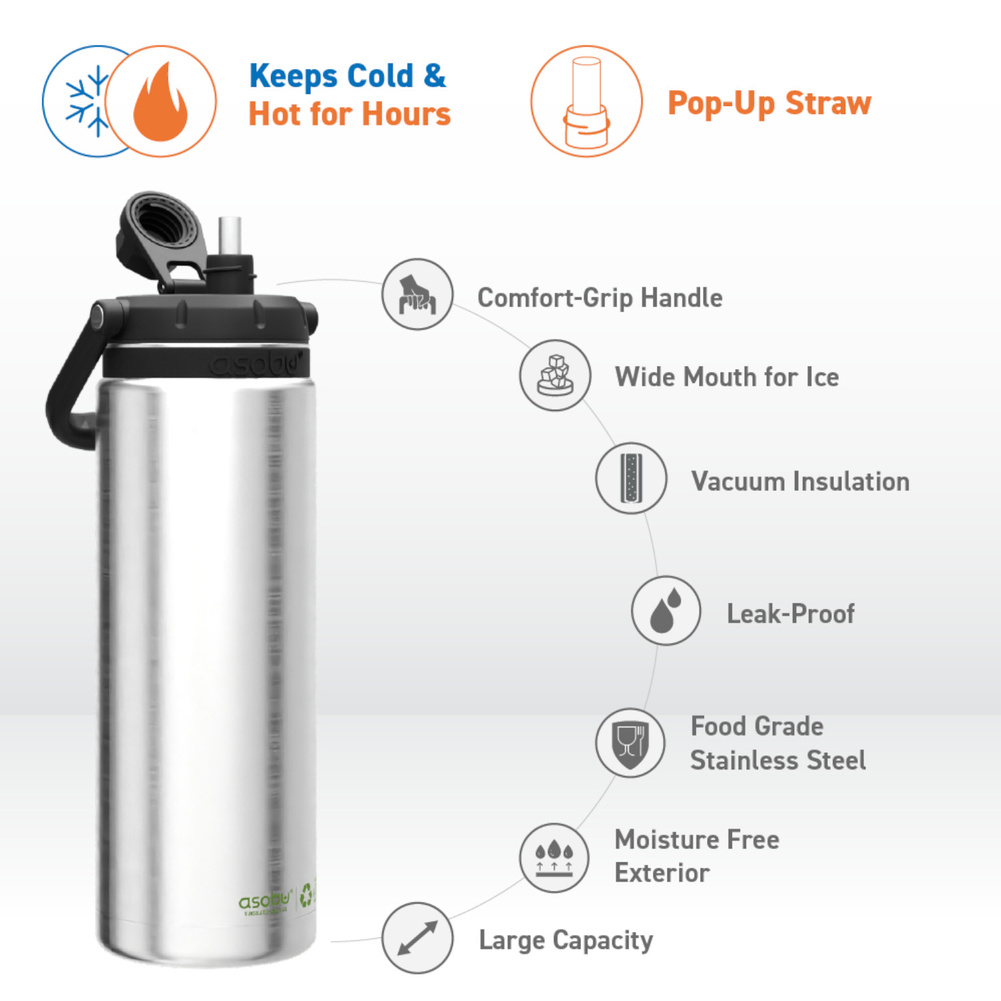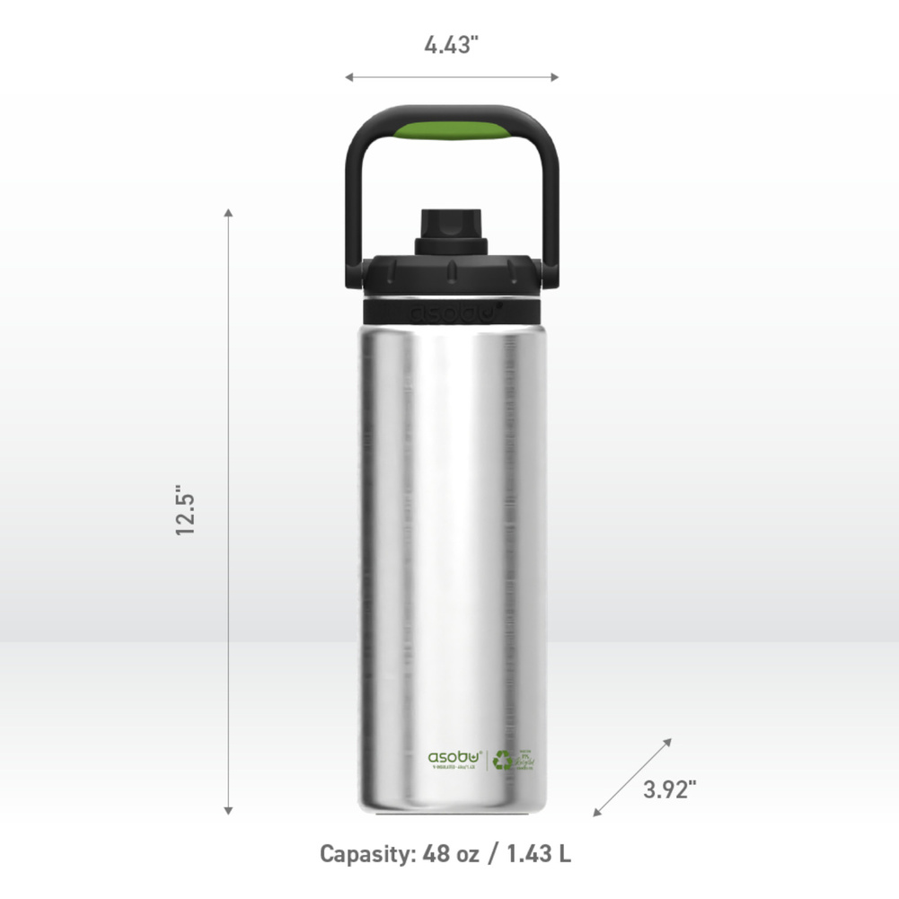 Z butelką ASOBU termiczną THE CANYON JUG RECYCLE, 1,48L zadbasz nie tylko o swoje nawodnienie, ale też o środowisko. Korpus butelki został wykonany w 91% ze stali z odzysku. Zadbaj o nawodnienie nawet podczas długiej wędrówki z butelką ASOBU THE CANYON JUG o pojemności aż 1,48L! Butelka Canyon jest łatwa do przenoszenia dzięki wygodnemu, odpowiednio dużemu uchwytowi z miękką w dotyku wkładką typu soft-touch na spodzie rączki. Nie musisz odwracać jej do góry dnem, aby się napić, ponieważ wewnątrz jest wysuwana słomka! Antypoślizgowa podstawa z gumy silikonowej zapobiega przypadkowemu ześliźnięciu się butelki (i hałasowaniu po jej odłożeniu). W trosce o środowisko i zdrowie produkty ASOBU wykonane są z trwałych i bezpiecznych materiałów jak stal nierdzewna 304 i 316, tritan i tworzywa BPA FREE. Tworzywo BPA Free oznacza, że jest bezpieczne i wolne od szkodliwych substancji. Dwuścienna konstrukcja butelek/termosów nie tylko dłużej utrzymuje temperaturę, ale też zapobiega kondensacji. Dwuścienne ścianki wewnątrz są pokryte dodatkowo miedzią dla jeszcze lepszej izolacji. Zalecenia: - Przed pierwszym użyciem umyj wszystkie elementy naczynia ręcznie. - Przed napełnieniem, zimnym lub gorącym płynem zaleca się butelkę przepłukać odpowiednio zimną lub gorącą wodą. - Pij ostrożnie z butelki szczególnie jeśli została napełniona gorącym płynem! Uwaga: 1. Produkt nie jest odpowiedni dla dzieci. 2. Nie należy zamrażać lub podgrzewać butelki/termosu na płytach kuchennych, w piekarniku lub kuchence mikrofalowej, butelka służy do napełniania płynem i nie jest odpowiednim naczyniem do podgrzewania lub zamrażania. 3. Nie należy wlewać napojów gazowanych, produktów mlecznych i żywności dla dzieci ze względu na ryzyko rozwoju bakterii. 4. Butelka nie służy do przechowywania wody, czy innych płynów dłużej niż 24 godziny. 5. Wszystkie elementy butelek/termosów należy myć ręcznie, gąbką i płynem do naczyń. Umyte naczynie należy dokładnie osuszyć i pozostawić do doschnięcia w suchym dobrze wentylowanym miejscu. 6. Nie należy stosować agresywnych środków czyszczących takich jak chlor, wybielacz czy też soda. Materiał: stal nierdzewna 304 i 316, tworzywo BPA FREE, silikon, miedź. Przybliżone wymiary: wysokość - 32 cm, średnica - 11cm, pojemność: 1,43l. Przybliżone wymiary brutto: wysokość - 32,5cm, długość - 13cm, szerokość - 13,3cm. Przybliżona waga brutto: 0,858kg. Opakowanie: kartonowe pudełko prezentowe.