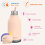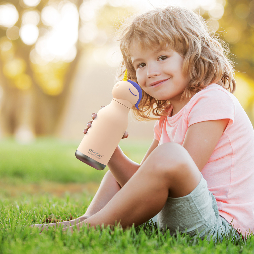 Szukasz zabawnej i funkcjonalnej butelki na wodę dla swojego malucha? Butelka Asobu z linii Bestie to urocza butelka na wodę dla dzieci ze stali nierdzewnej z różnymi główkami na zakrętce! Butelkę pokrywa na zewnątrz tworzywo typu SOFT TOUCH, co sprawia, że butelka jest przyjemna w dotyku. Wewnątrz butelki znajduje się wyjmowana słomka z miękkim ustnikiem. Na spodzie butelki koło z antypoślizgowego silikonu. Butelka przeznaczona jest dla dzieci od 4 roku życia. W trosce o środowisko i zdrowie produkty ASOBU wykonane są z trwałych i bezpiecznych materiałów jak stal nierdzewna, tritan i tworzywa BPA FREE. Tworzywo BPA Free oznacza, że jest bezpieczne i wolne od szkodliwych substancji. Dwuścienna konstrukcja butelek/termosów nie tylko dłużej utrzymuje temperaturę, ale też zapobiega kondensacji. Dwuścienne ścianki wewnątrz są pokryte dodatkowo miedzią dla jeszcze lepszej izolacji. Zalecenia: - Przed pierwszym użyciem umyj wszystkie elementy naczynia ręcznie. - Przed napełnieniem, zimnym lub gorącym płynem zaleca się butelkę przepłukać odpowiednio zimną lub gorącą wodą. - Pij ostrożnie z butelki szczególnie jeśli została napełniona gorącym płynem! Uwaga: 1. Nie należy zamrażać lub podgrzewać butelki/termosu na płytach kuchennych, w piekarniku lub kuchence mikrofalowej, butelka służy do napełniania płynem i nie jest odpowiednim naczyniem do podgrzewania lub zamrażania. 2. Nie należy wlewać napojów gazowanych, produktów mlecznych i żywności dla dzieci ze względu na ryzyko rozwoju bakterii. 3. Nie należy umieszczać kostek lodu wewnątrz. 4. Butelka nie służy do przechowywania wody, czy innych płynów dłużej niż 24 godziny. 5. Wszystkie elementy butelek/termosów należy myć ręcznie, gąbką i płynem do naczyń. Umyte naczynie należy dokładnie osuszyć i pozostawić do doschnięcia w suchym dobrze wentylowanym miejscu. 6. Nie należy stosować agresywnych środków czyszczących takich jak chlor, wybielacz czy też soda. Materiał: stal nierdzewna, tworzywo BPA FREE, silikon, miedź. Przybliżone wymiary: wysokość - 23cm, średnica - 7,5cm, pojemność: 460ml. Przybliżone wymiary brutto: wysokość - 24cm, długość - 8,4cm, szerokość - 8,2cm. Przybliżona waga brutto: 0,398kg. Opakowanie: kartonowe pudełko prezentowe.