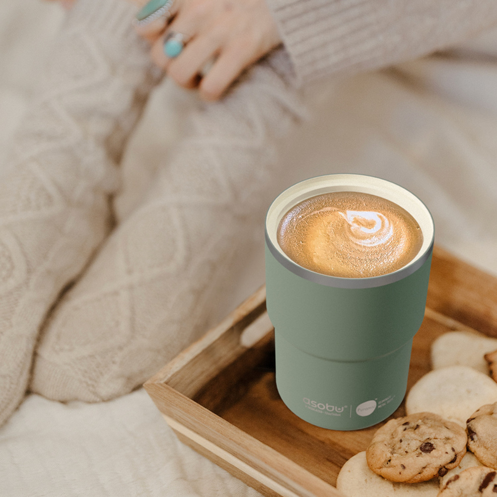 Kawa bez metalicznego posmaku z metalowego kubka, z kubkiem The Mini Pick Up ASOBU to możliwe. Kubek The Mini Pick Up ASOBU łączy zalety izolowanego termicznie kubka z porcelanową filiżanką. Gładka, ceramiczna powłoka zachowuje smak napoju, a izolowana próżniowo obudowa ze stali nierdzewnej utrzymuje napoje gorące przez długi czas. Otwierana pokrywa jest łatwa w użyciu i idealnie pasuje do ceramicznej wyściółki. Pasuje do standardowych uchwytów samochodowych. Na spodzie silikonowy pierścień. W trosce o środowisko i zdrowie produkty ASOBU wykonane są z trwałych i bezpiecznych materiałów jak stal nierdzewna, tritan i tworzywa BPA FREE. Tworzywo BPA Free oznacza, że jest bezpieczne i wolne od szkodliwych substancji. Dwuścienna konstrukcja kubka nie tylko dłużej utrzymuje temperaturę, ale też zapobiega kondensacji. Dwuścienne ścianki wewnątrz są pokryte dodatkowo miedzią dla jeszcze lepszej izolacji. Zalecenia: - Przed pierwszym użyciem umyj wszystkie elementy naczynia ręcznie. - Przed napełnieniem, zimnym lub gorącym płynem zaleca się butelkę przepłukać odpowiednio zimną lub gorącą wodą. - Pij ostrożnie z kubka szczególnie jeśli został napełniony gorącym płynem! Uwaga: 1. Produkt nie jest odpowiedni dla dzieci. 2. Nie należy zamrażać lub podgrzewać kubka na płytach kuchennych, w piekarniku lub kuchence mikrofalowej, kubek służy do napełniania płynem i nie jest odpowiednim naczyniem do podgrzewania lub zamrażania. 3. Nie należy wlewać napojów gazowanych, produktów mlecznych i żywności dla dzieci ze względu na ryzyko rozwoju bakterii. 4. Nie należy umieszczać kostek lodu wewnątrz. 5. Butelka nie służy do przechowywania wody, czy innych płynów dłużej niż 24 godziny. 6. Wszystkie elementy butelek/termosów należy myć ręcznie, gąbką i płynem do naczyń. Umyte naczynie należy dokładnie osuszyć i pozostawić do doschnięcia w suchym dobrze wentylowanym miejscu. 7. Nie należy stosować agresywnych środków czyszczących takich jak chlor, wybielacz czy też soda. Materiał: stal nierdzewna, tworzywo BPA FREE, silikon, miedź. Przybliżone wymiary: wysokość - 14,5cm, średnica - 9cm, średnica dół - 7,3cm, pojemność: 355ml. Przybliżone wymiary brutto: wysokość - 15cm, długość - 9,5cm, szerokość - 9,5cm. Przybliżona waga brutto: 0,318kg. Opakowanie: kartonowe pudełko prezentowe.