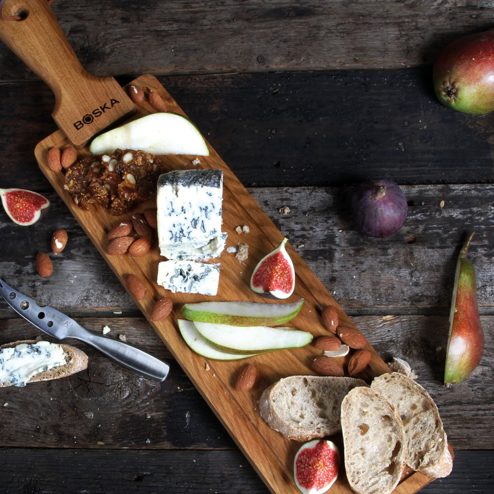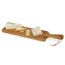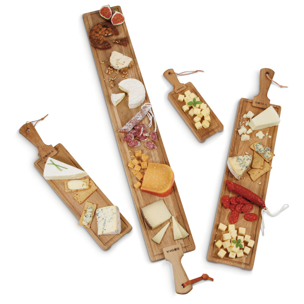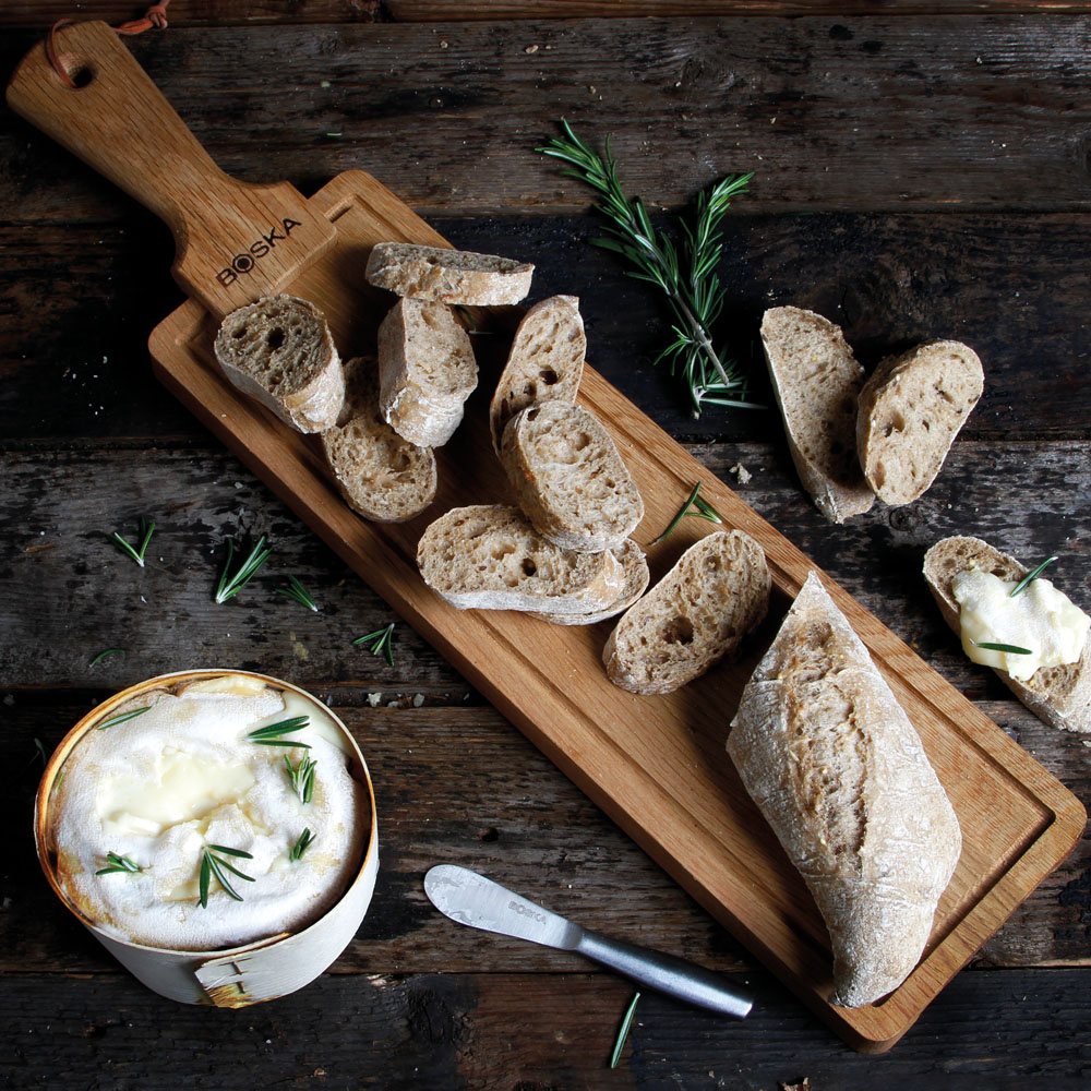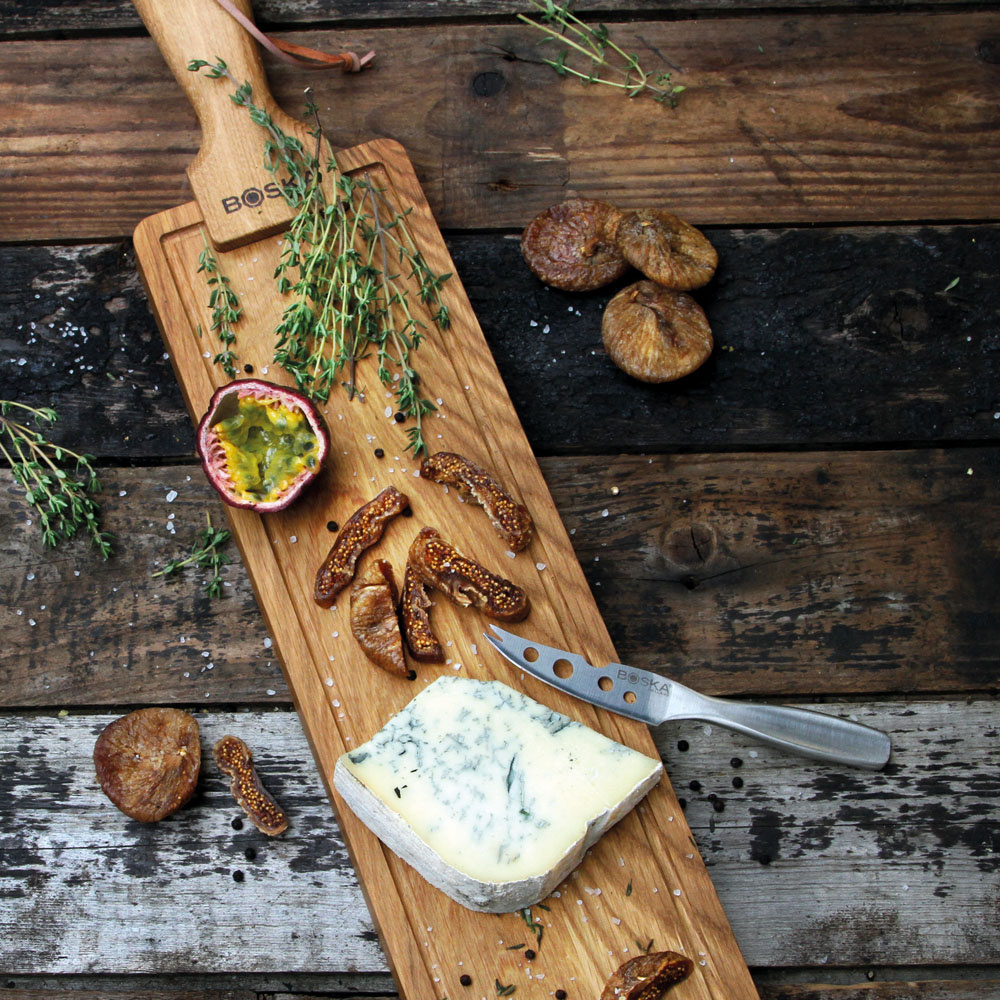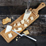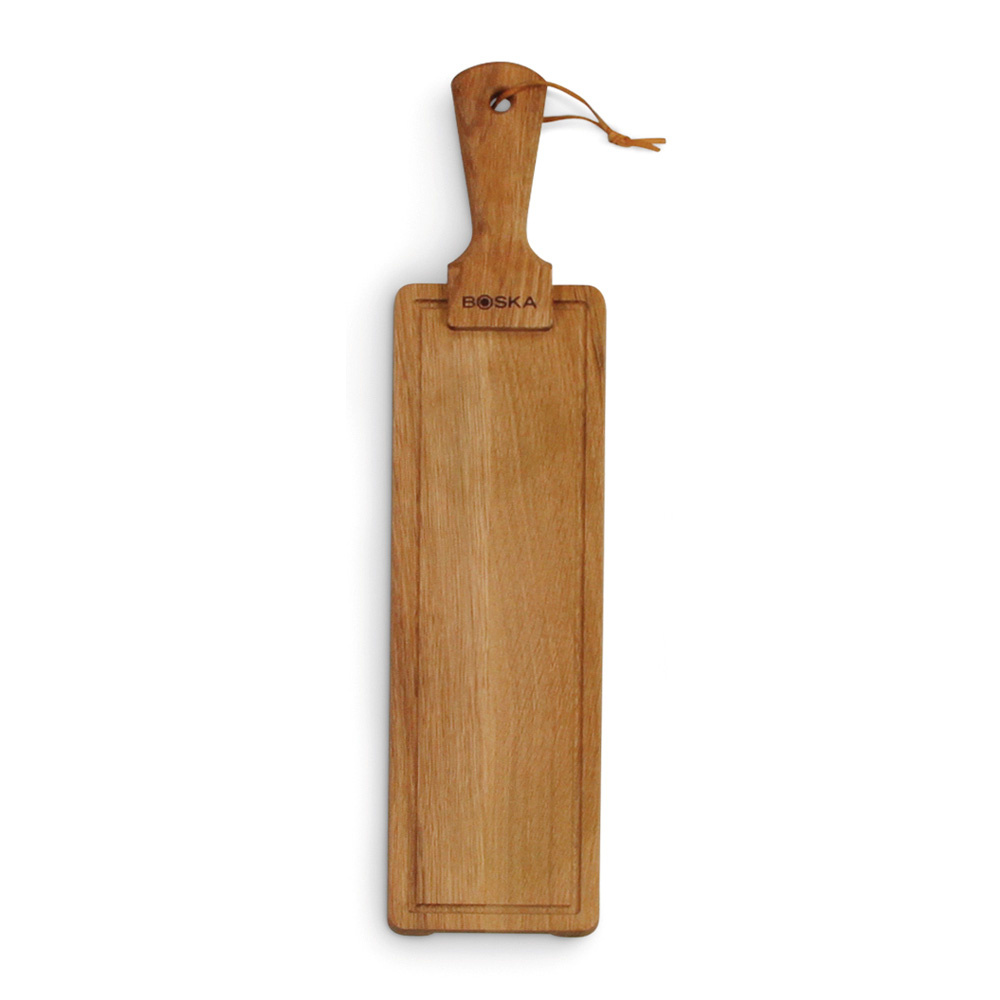 Elegancka dębowa deska do serwowania przekąsek o długości 53 cm! Deska ma wprost wymarzony kształt do serwowania przekąsek z sera, które prezentują się na niej po królewsku. Idealnie nadaje się na spotkania rodzinne i imprezy. Grubość deski to aż 2,2 cm, całkowita długość 53 cm a szerokość 12 cm a powierzchnia do serwowania to 34 cm na 8 cm! Przed pierwszym użyciem deskę należy solidnie naoliwić, pozwolić by drewno chłonęło olej przez kilka dni. Potem czynność należy powtarzać co jakiś czas. Deskę myjemy ręcznie z dodatkiem łagodnych detergentów. Przybliżone wymiary deski : grubość 2,2 cm, długość 53 cm, szerokość 12 cm, powierzchnia do serwowania to 34 cm na 8 cm Przybliżone wymiary brutto: wysokość 53 cm, długość 12 cm, szerokość 4 cm Przybliżona waga brutto: 0,893 kg Opakowanie: brak