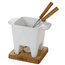 W planach romantyczny wieczór we dwoje, zaserwuj fondue! Zgrabny, kompaktowy zestaw do fondue dla dwojga z Boski ma wszystko czego potrzebujesz. Ceramiczne naczynie pewnie stoi na czterech nóżkach na dębowej podstawie, do zestawu dołączono 2 widelczyki ze stali nierdzewnej wykończone drewnem oraz podgrzewacz. Ceramiczne naczynie nadaje się do użycia w kuchni mikrofalowej co znacznie skraca czas przygotowania fondue. Ceramiczne naczynie należy przed każdym użyciem namoczyć w zimnej wodzie przez 2 godziny. Nie należy stawiać bezpośrednio na płycie kuchennej. Są różne metody przygotowywania serowego fondue, ale zalecamy przygotować je w większym naczyniu a następnie ostrożnie przelać. Ceramiczne naczynie należy myć ręcznie gorącą wodą z dodatkiem łagodnego detergentu, podstawę dębową czyścimy wilgotną ściereczką, nie należny do czyszczenia używać ostrych zmywaków i agresywnych środków czyszczących w tym sody. Przybliżone wymiary naczynia: wysokość 10,8 cm, długość 14,5 cm, szerokość 9,5 cm Przybliżone wymiary podstawy: wysokość 1,8 cm, długość 10,7 cm, szerokość 10,7 cm Przybliżone wymiary widelczyków: długość 14,5 cm Przybliżone wymiary brutto: wysokość 13,5 cm, długość 13 cm, szerokość 13 cm Przybliżona waga brutto: 0,777 kg Opakowanie: kartonowe pudełko