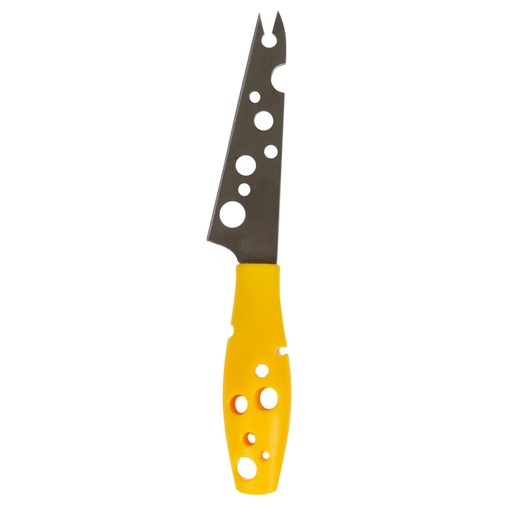 Dzięki temu nożowi z łatwością pokroisz sery miękkie i półtwarde. Wykonana z plastiku rękojeść odwzorowuje swoim wyglądem ser szwajcarski. Wykonane z wysokiej jakości stali nierdzewnej ostrze zostało wyposażone w dwa szpikulce na jego końcu, które można wykorzystać do częstowania się kawałkami sera, co jest zdecydowanie bardziej higieniczne.